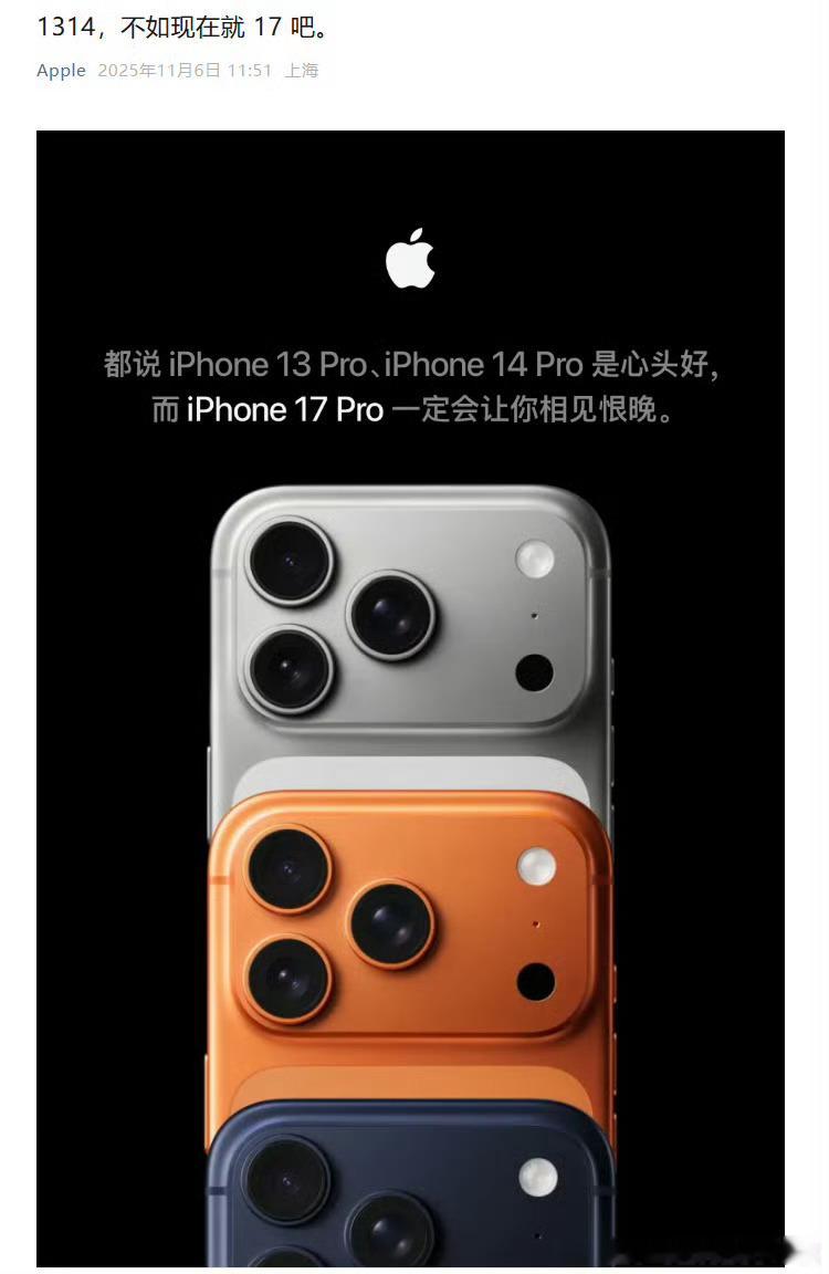 苹果喊话iPhone13和14用户换新机升级感知最大的其实就是120Hz高刷屏和4800万像素相机,如果你对这两个需求不大,那我的建议是「还能打」[二哈]