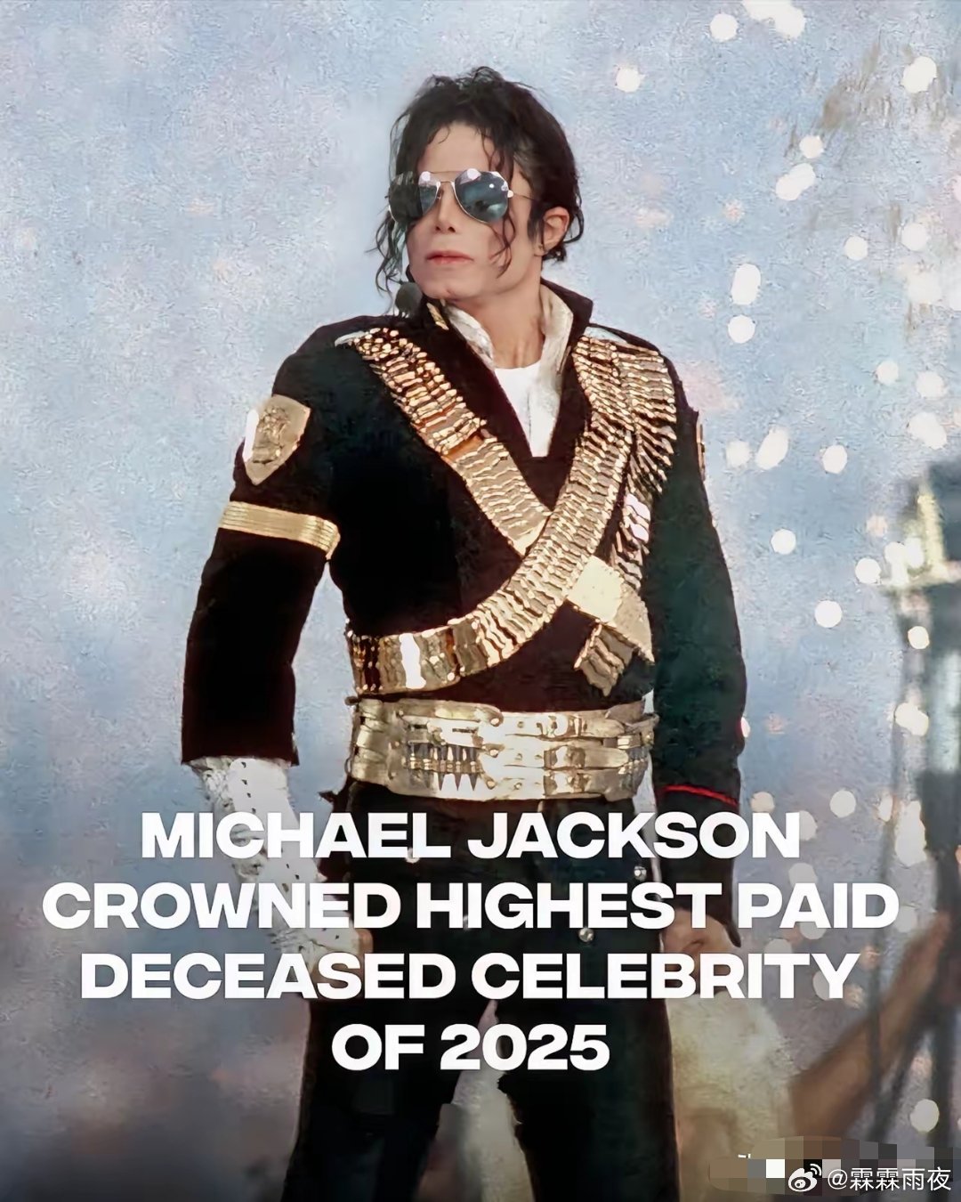 据报道,流行音乐之王迈克尔·杰克逊再次荣登2025年已故名人收入的榜首,在过去一年,收入高达1.05亿美元。自从他2009年离世到现在,他的影响和收入持续增长,从未停止过。16年来,他的版权带来了35亿美元的收入,非常惊人!