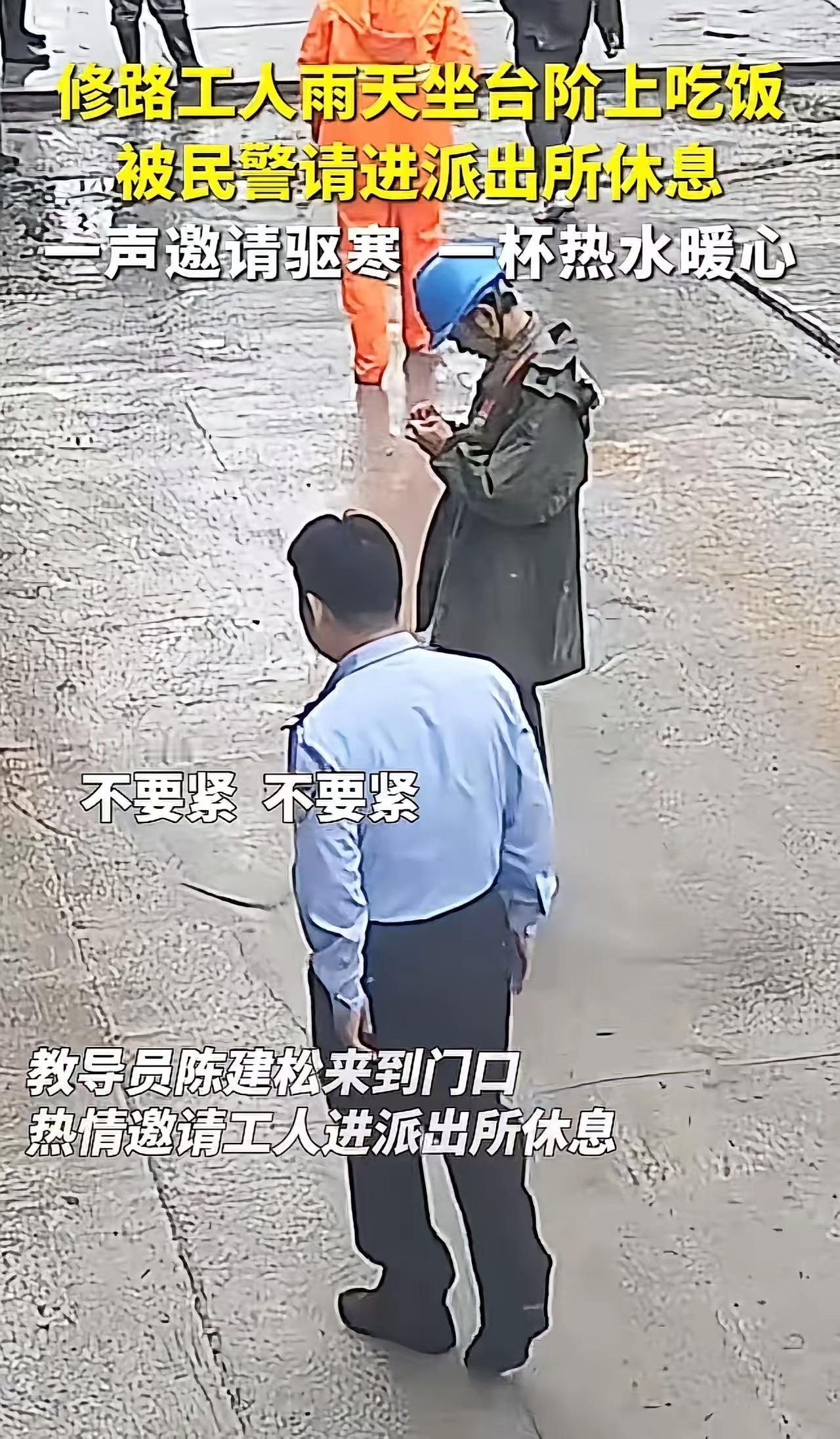 这个民警,火到人民日报!湖北黄石的这个温暖瞬间,瞬间刷爆了无数人的心。修路工人在雨天里,顶着风雨坐在派出所门口的台阶上避雨吃饭,或许只是生活中一个普通的场景,但正是这份细腻的关怀,让人看到了最真实的人性光辉。 当民警走来时,工人们一时间愣住了,以为对方要赶他们走。毕竟,很多时候我们习惯了“规矩”与“效率”,对那些“多余”的关心反而心存警惕。但令人感动的是,这位民警没有用命令压制他们,也没有冷漠地推开他们,而是用一句“大家进去里面坐吧,外面风大下雨,太冷了”温暖了现场的空气。 这一幕,像极了我们生活中那些被忽视的细节——那些平凡的善意,正悄悄地滋养着这个社会的温度。民警的行动,不仅仅是出于职业责任,更像是一场无声的教育:在这个快节奏、功利至上的时代,善良与关怀依然可以成为最强大的力量。 更令人深思的是,工人们的反应也极具代表性。或许他们一开始担心被“规矩”束缚,担心“多此一举”的关心会带来麻烦,但在民警的善意中,他们感受到了一份久违的温暖。那一瞬间,所有的偏见和隔阂都被融化,只剩下一份人间真情。 这件事迅速在网络上传开,网友们纷纷点赞:“这样的民警,值得所有人的尊敬!”“生活中最美的风景,就是这些细节。”有人说:“我们需要更多像他这样的守护者,用温暖点亮这个社会。”也有人感慨:“在这个浮躁的时代,善意比任何奖章都珍贵。” 其实,这不仅仅是一场简单的“善意之举”,更是对社会价值观的一次深刻提醒。善良、理解、包容,才是这个社会最需要的力量。我们每个人都可以像这位民警一样,用一点点温暖去融化别人的冰山,用一份关怀去照亮身边的世界。 这件事也让我们反思:在我们追求成功和利益的同时,是否也应该停下来,看看身边那些需要帮助的人?在这个物质丰富、信息爆炸的时代,真正的幸福,或许就是这些简单的善意和真心。 希望每一个看到这篇文章的人,都能从中得到一点启示:善良不是一时的冲动,而是一种生活的态度。像这位民警一样,用行动去温暖他人,用心去守护这个社会的每一份真情。因为,只有当我们都愿意付出一点善意,社会才能变得更加美好。 让我们为这份温暖点赞,也希望这样的故事能成为我们心中的灯塔,照亮前行的路。因为,善良,是这个世界最坚实的底色,也是我们每个人都能拥有的力量。|农民工