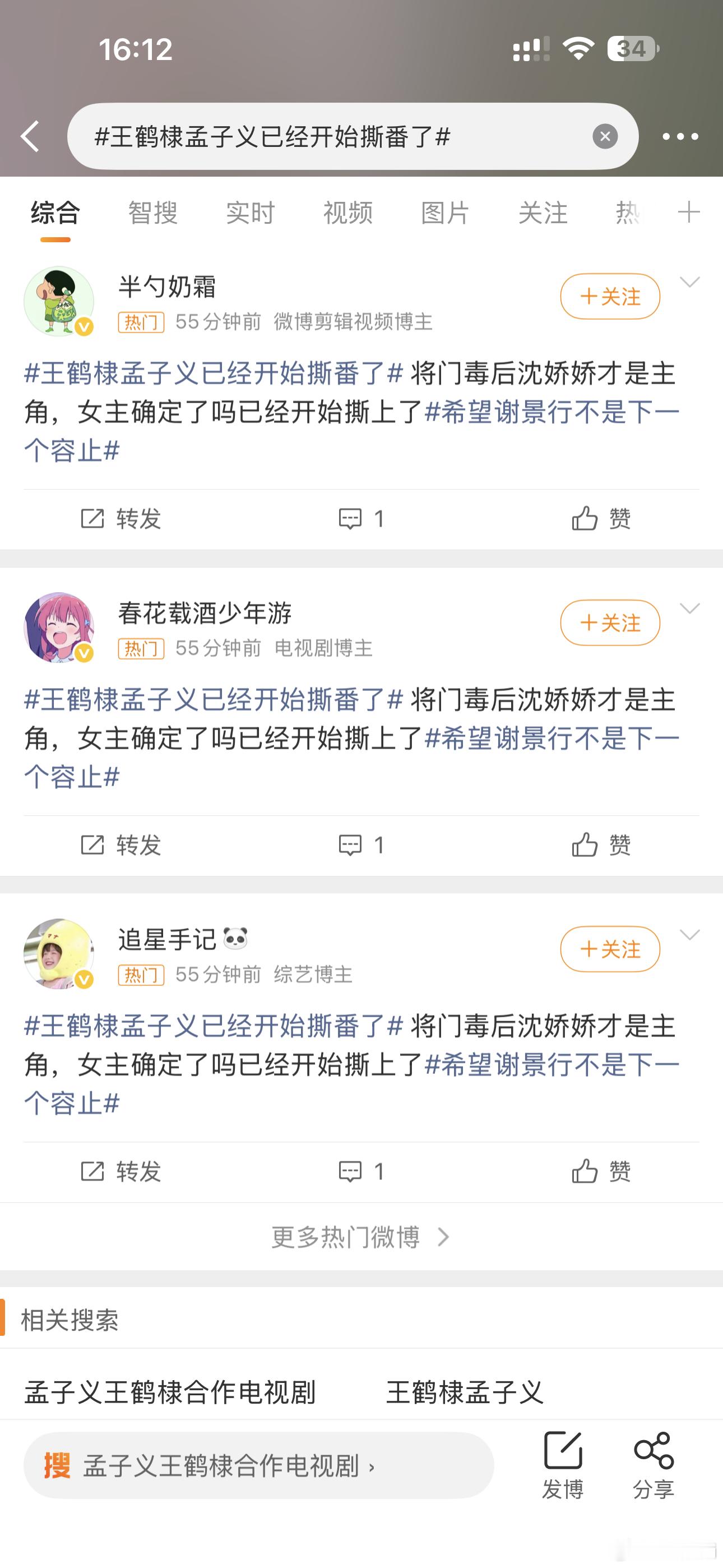 今天有二十多个热搜了吧,讲实话那个点进去都没那么大热度,但是就是一直不停的上,王