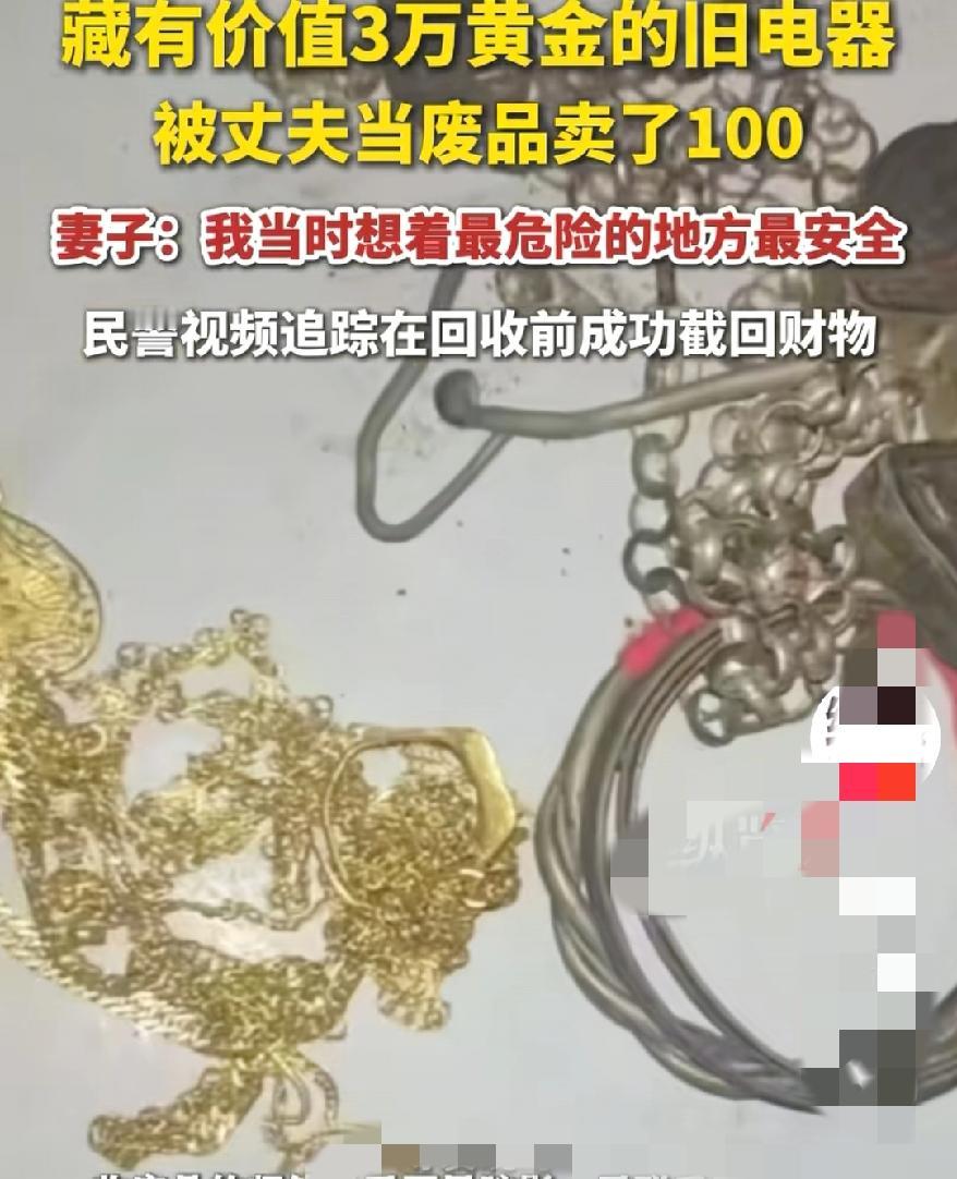 3万黄金藏旧家电 被100元卖掉? 陈女士说,最危险的地方最安全,没想到差点把自己的小金库丢了! 浙江陈女士的操作真让人捏把汗,觉得旧冰箱洗衣机没人注意,就把金饰藏里头,结果老伴不知情当废品处理了。 事后赶紧报警,幸好民警给力及时追回,不然这损失可就真打了水漂。 其实很多人都有这种藏东西的习惯,就像我每次都能从自己的大衣口袋里,掏出几张百元大钞。 像旧衣服口袋、床底、鞋盒、枕头这些地方, 你当保险柜,但架不住家里人不知道呀,这不就闹乌龙了吗? 其实我觉着买个带锁的保险柜。或者存银行保险箱都是不错的选择。 你有类似这种藏东西的操作吗?你的私人物品一般放哪里觉得比较安全?黄金丢件 黄金收拾知识 民间收藏陷阱 保险