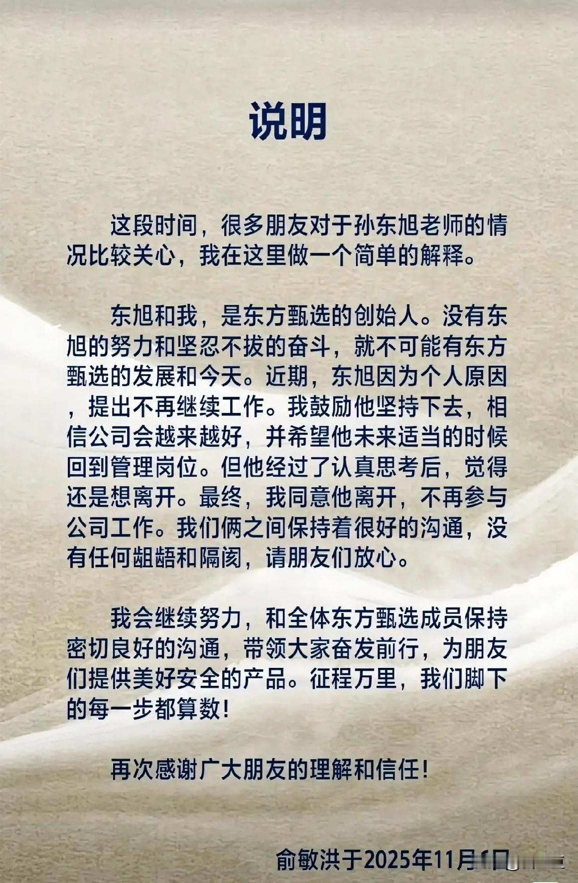 孙东旭走了 从新东方离职了,看到官宣,竟一点不意外。 当年他靠“讲课”封神,后来因“直播”翻红,现在用“离职”收场。 有人说他是钱到手了,激流勇退,我看更像是时代不需要“老师”了。当初新东方老师个个是明星,现在主播才是硬通货。知识?情怀?最后都得给“3、2、1,上链接”让路。 最讽刺的是,当年听他讲课的学生,现在蹲他直播间抢纸巾。不是学生变了,是赚钱的姿势全变了。我们怀念那个讲段子的Sunny,但更习惯这个卖大米的孙总。 别扯什么个人选择,这就是生意。 俞敏洪需要的是能带货的CEO,不是只会讲课的副校长。老孙的使命,在“东方甄选”股价冲高那一刻,其实就已经完成了。 你说是时代抛弃了他,还是他顺应了时代?评论区聊聊,你最后一次听新东方老师的课,是什么时候?孙东旭