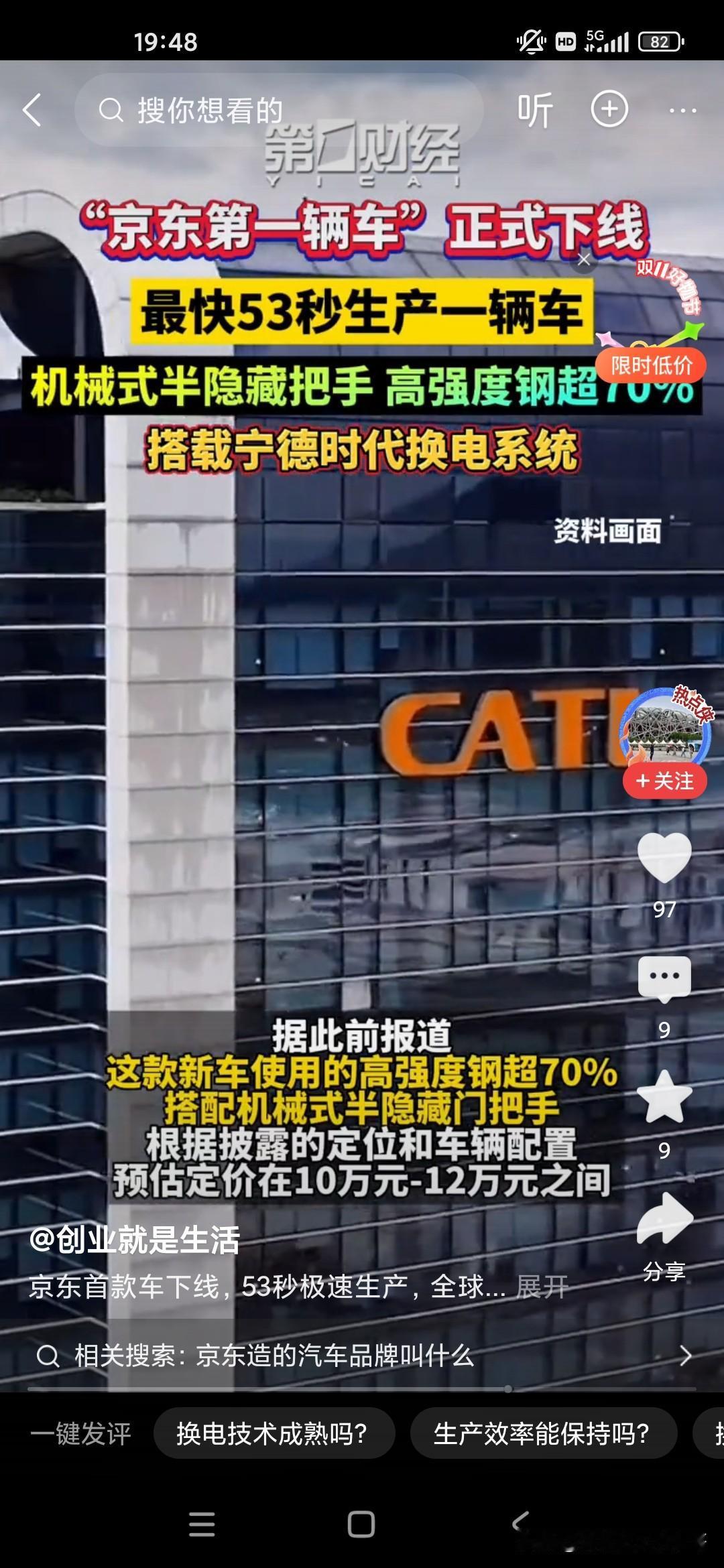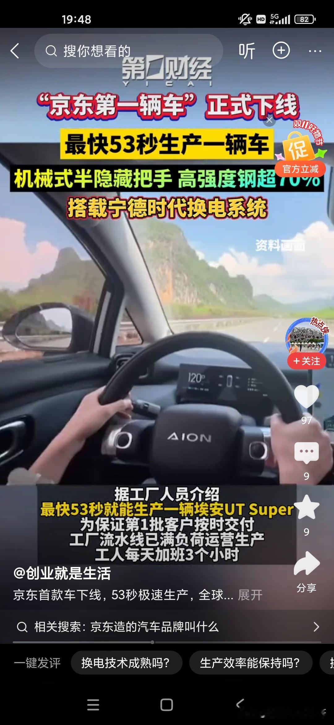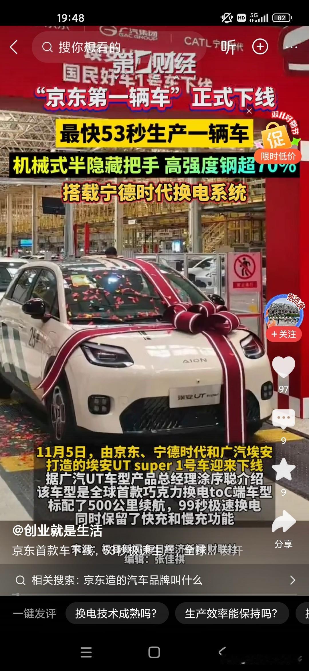 我发现大家在买大宗货物,尤其是像私家车这种动不动十几万几十万的商品的时候,常常会因为他的老总有个人魅力才可能去买,你看比亚迪的王传福,我们都非常佩服,所以很多人会去买比亚迪,还有很多人比较喜欢雷军,所以说会去选择他的小米,包括京东,这次造车我们都很惊叹,因为造车并不是一件容易的活呀,刘强东决定造车的时候,我们还是挺信任他的,比较信得过他的人品,相信他的做工用料啊,应该不会胡来,现在第一辆京东知道的私家车呀已经下线了,将来的话不知道质量怎么样,能不能经受住市场的考验!