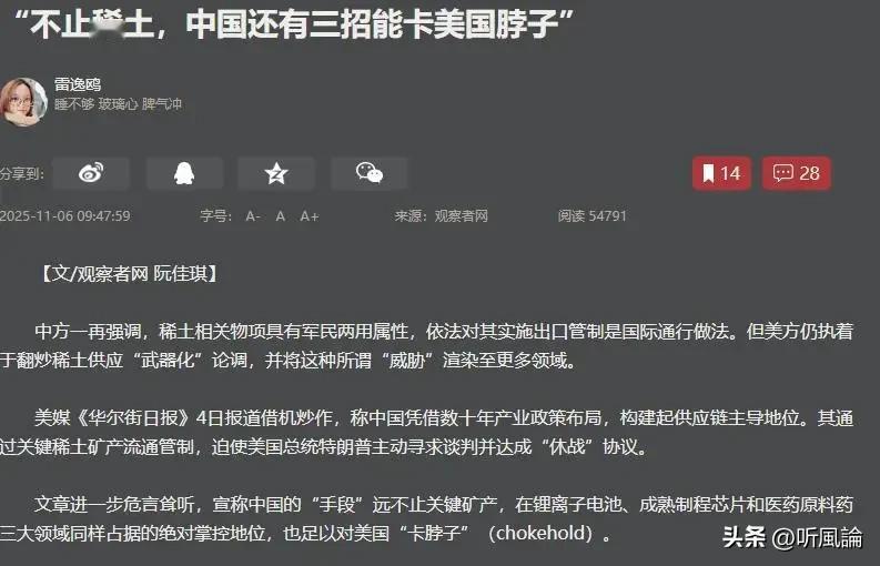 中美谈事咧,外媒说咱手里还有三张硬牌 最近中美关系缓了口气,《华尔街日报》发文章说,中国攒了几十年的家当,真跟美国较劲时不止稀土一张牌,还有三样能拿住美国的地方。到底是美国人清醒咧,还是给咱灌迷魂汤?咱一件一件说。 头一个是锂电池。咱这儿电动汽车咋这厉害?一来是为咧少进口石油,二来是电池产业确实硬梆。全世界约莫85%的锂电池都是咱这儿产的,从挖矿到组装一整条线都攥在手里,这叫产业链齐全。 再一个是中不溜的芯片。有人心想中国芯片不是落后么?是,顶尖的咱不如美国,可中低端芯片咱供应链扎实很。《华尔街日报》提到,到2025年咱自家芯片能用上一半,像华为海思、中芯国际在普通芯片上做得不赖。不过7纳米以下的尖尖货还得靠美国设备,这点不敢张狂。 第三样是制药。普通药原料全球数咱最麻利,可新药研发这种挣大钱的活儿,还是美国牛,咱每年还得给人家交专利钱。 总的来看,外媒说的这三样确实是咱多年攒下的底货,能涨点话语权。可甭忘了,外面变数大,贸易摩擦、技术卡脖子随时能揭咱的短。所以咱得把心眼放正——中美较量不是一天两天的事,逆风甭怂,顺风甭浪,稳住架势才能走得远。学英语最好的方法是什么 为什么你做的酱牛肉不好吃? 一吨原油能变成多少汽油和柴油? 云南有什么好的兰花品种 华为研发如何更快崛起? “国货之光”红旗到底怎么样? 灵活就业还有必要交社保吗 常规潜艇能否发射弹道导弹 中国为何要大量储备原油 孩子数学成绩低,谁有好办法? 汽车发动机技术哪家强 中国会从哪些国家进口石油 我这张纸币能值多少钱 日本宣布组建特种作战旅有何企图 酱牛肉的做法,你学会了吗?