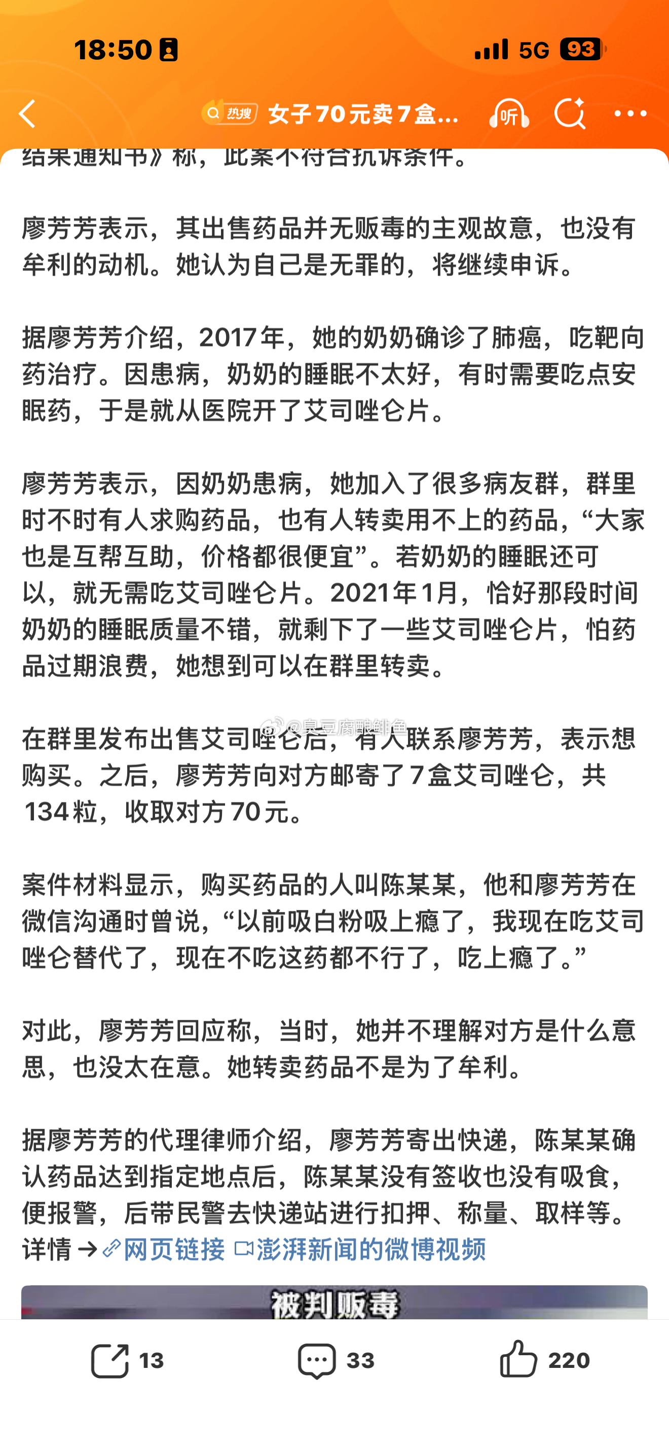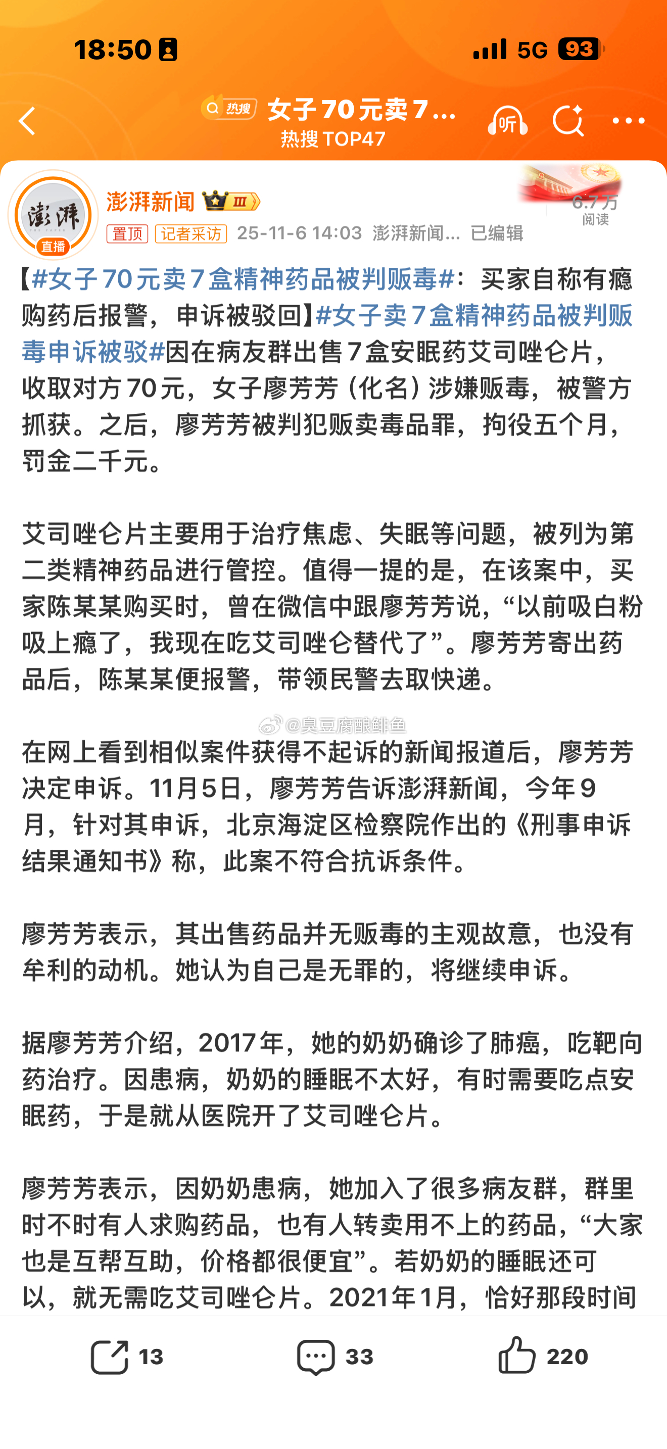 女子70元卖7盒精神药品被判贩毒这是立下大功了。
