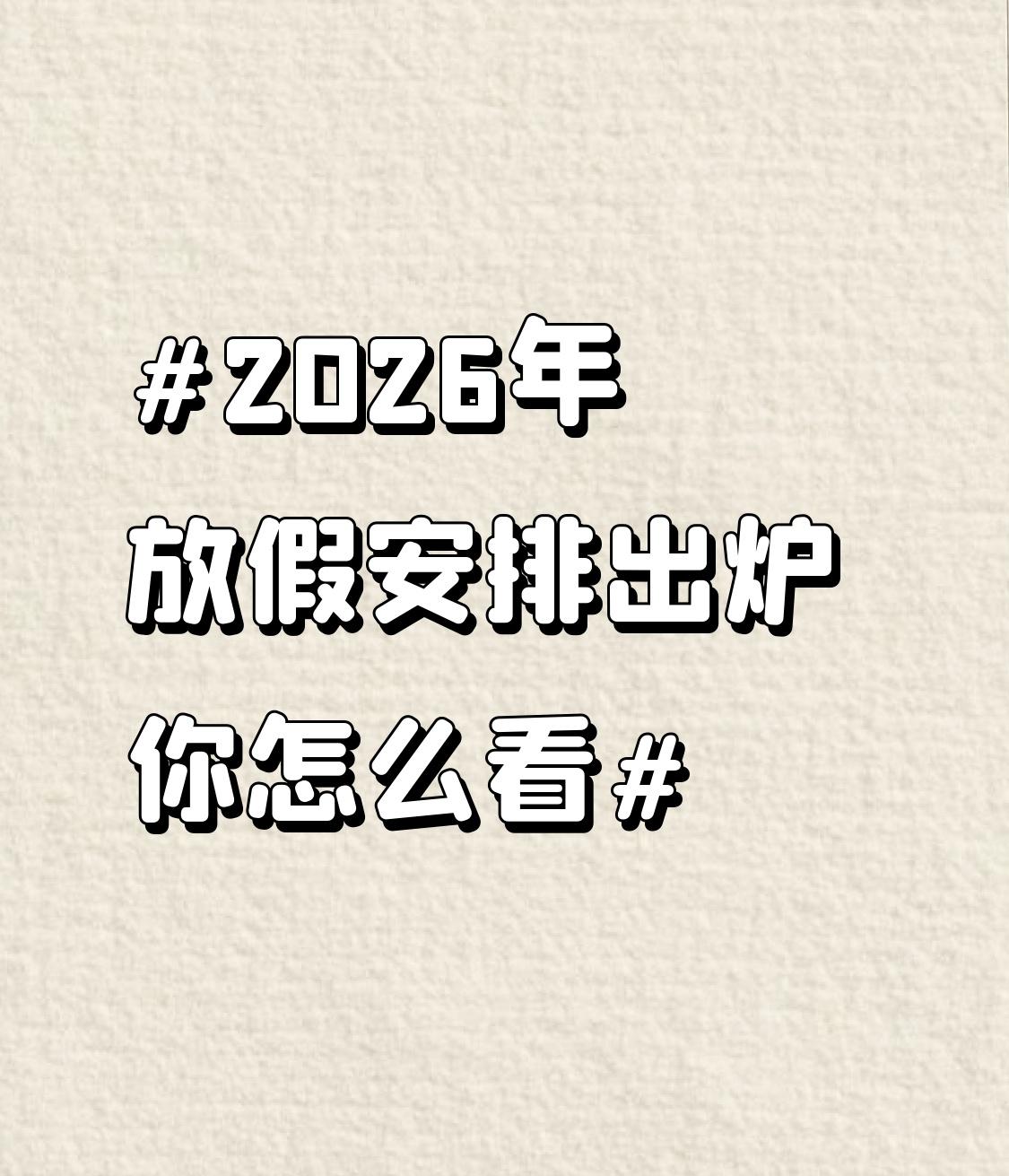 2026年放假安排出炉 你怎么看 2026年放假安排出炉,这消息一出来,好多人都开始提前盘算啦。整体看,假期分布还算比较均匀。春节放9天,这能让人有充足时间回家过年、走亲访友,不用像以前那样匆匆忙忙。劳动节放5天,也可以安排个短途旅行。 不过,调休还是避免不了,像春节要补两天班,国庆节补两天班,连着上班的日子想想都让人头大。但换个角度,有了这些假期,就有盼头了,提前计划一些旅行或者学习安排,也能让生活更有期待。大家怎么看这放假安排呢? 期待