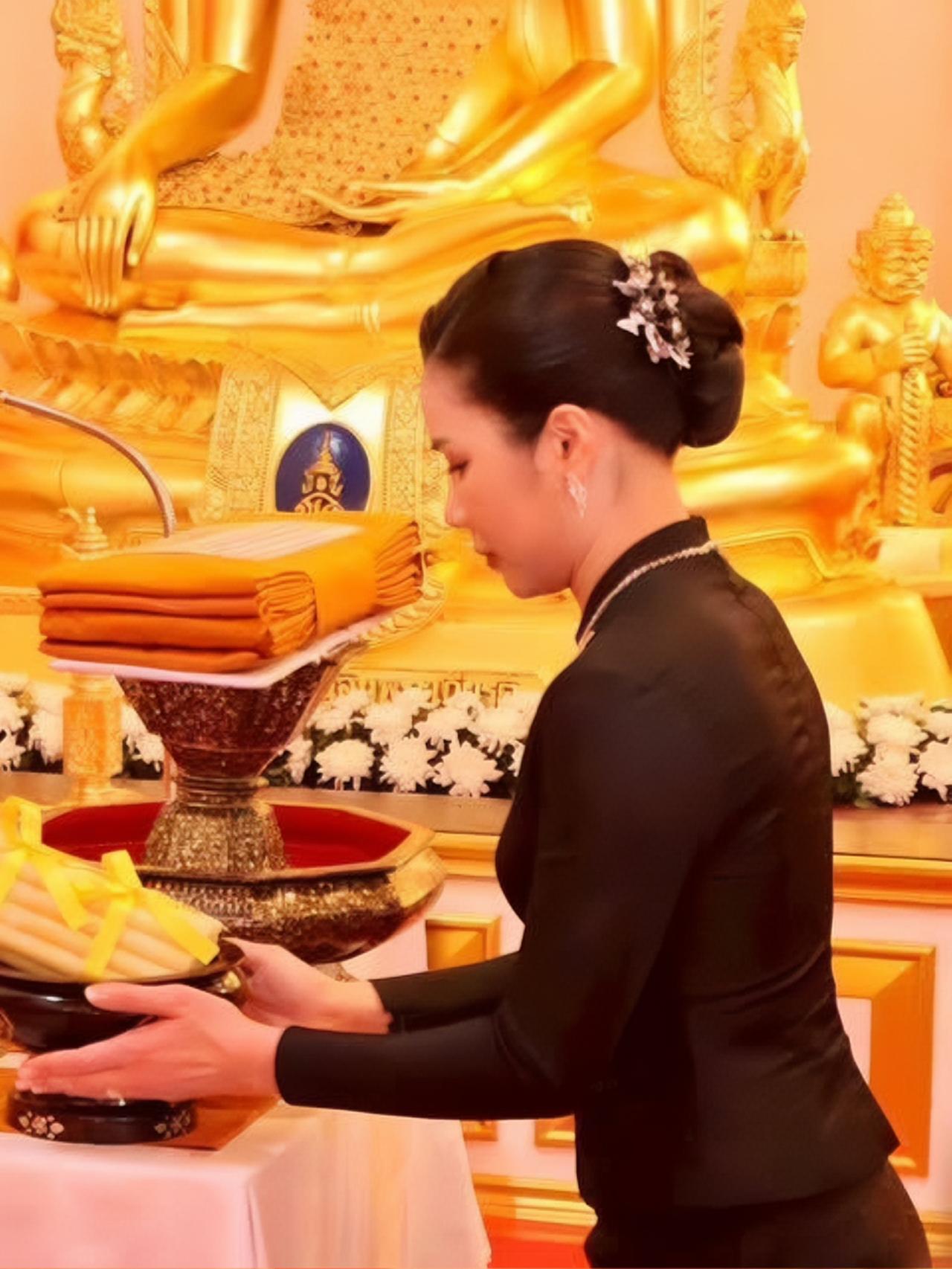 32岁查尤特拉真漂亮,是泰国后宫颜值天花板 2025年11月5日下午2时30分,国王陛下钦定,坤英·查尤特拉·瓦奇拉帕塔索帕少将作代表,向那空帕侬府塔帕侬县,帕塔帕侬沃拉玛哈维汉寺,敬献卡廷袈裟、饰品及寺庙维护基金。当日,查尤特拉身着黑丧服亮相,绝美动人,颜值出众、气质超凡,浑身散发着满满的少女感。