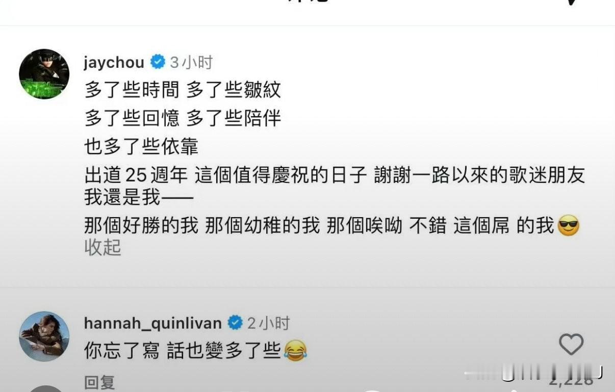 哈哈哈哈!这种“不刻意撒糖,却处处是糖”的互动,是最自然的,哎!时间是把杀猪刀,但对杰伦来说,更多是温柔的雕刻师。
