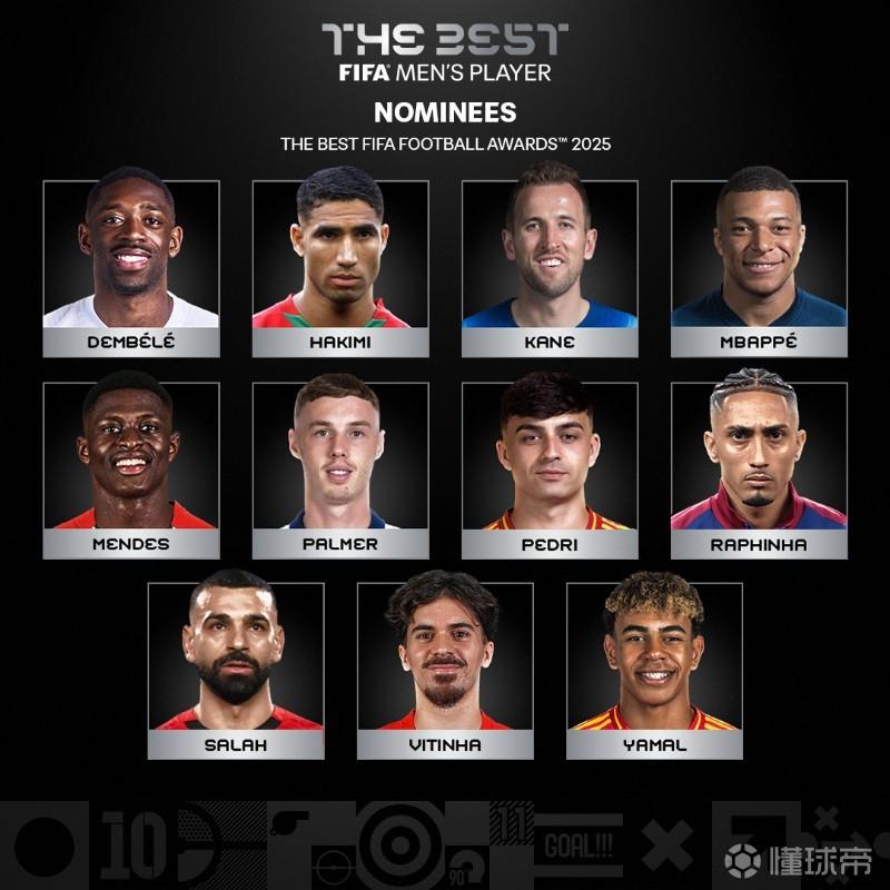 来了来了,巴萨的巴西球员拉菲尼亚终于入选了2025年国际足联年度最佳球员候选人。 拉菲尼亚是最有资格入选的球员。 他出场 64 场 打进 38 球送出 24 次助攻,西甲最佳球员 ,欧冠金靴,国内三冠王。 拉菲尼亚(巴塞罗那/巴西) 帕尔默(切尔西/英格兰) 佩德里(巴塞罗那/西班牙) 登贝莱(巴黎圣日耳曼/法国) 维蒂尼亚(巴黎圣日耳曼/葡萄牙) 亚马尔(巴塞罗那/西班牙) 凯恩(拜仁慕尼黑/英格兰) 努诺-门德斯(巴黎圣日耳曼/葡萄牙) 阿什拉夫(巴黎圣日耳曼/摩洛哥) 萨拉赫(利物浦/埃及) 姆巴佩(皇家马德里/法国) 巴萨