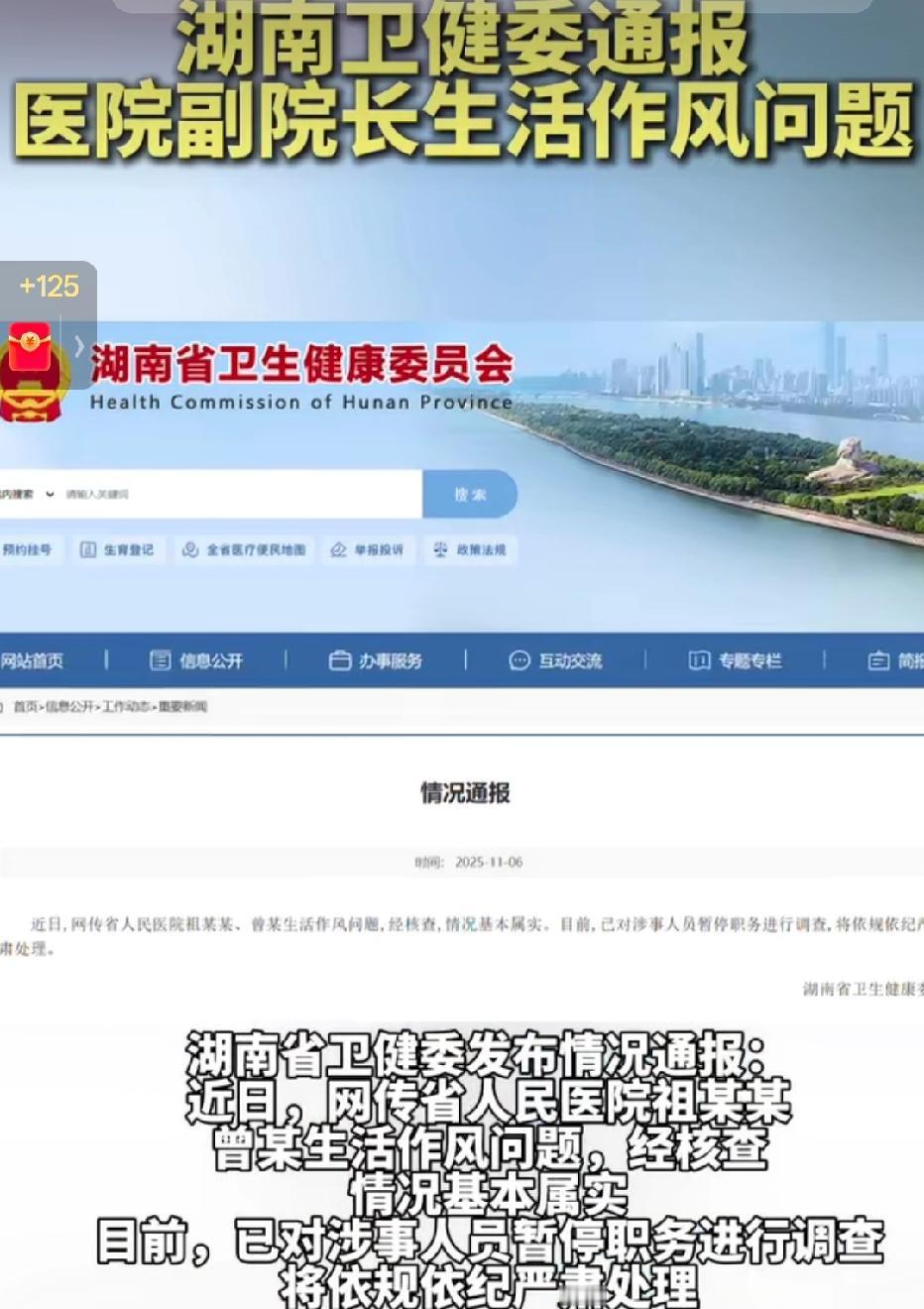 湖南卫健委通报“医院作风问题”,问责之后更需长效监督 近日,湖南卫健委就此前网络热议的某医院人员作风问题发布正式通报,确认涉事人员存在不当行为,并依据相关规定对相关责任人进行了严肃问责处理。 这起发生在医院值班室的事件曾引发广泛关注。如今,官方通报为事件画上了阶段性句号,体现了对医疗行业风纪的高度重视。通报不仅是对个别人员的惩处,更是向所有医疗机构发出的明确信号:必须持续加强医德医风建设,规范医务人员行为。 问责是必要的一步,但更重要的是长效监督。唯有营造风清气正的内部环境,才能让医护人员安心执业,最终守护好患者的权益与医疗行业的声誉。