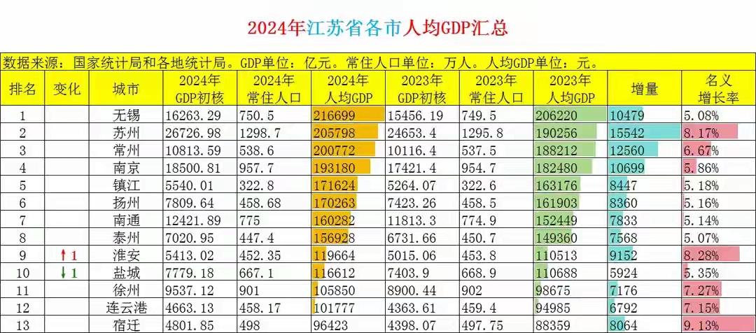 财经 江苏 老徐傻眼了,苏北王名不符实,用经济总量可以,用人均指标不太行。联合国评价发达城市程度,喜欢用人均gdp,人均可支配收入,江苏苏南苏中8个城市进入发达地区。可在人均GDP,苏北五市中,老徐落后淮安、盐城的,一个跟南京都市圈玩,一个跟上海都市圈混,仅高于连云港、宿迁。 人均收入,盐城、淮安超过全国平均水平。而加入徐州都市圈的徐州、连云港、宿迁排名江苏后三名,均没有达到国标。从今年前三季度来看,也是如此。老徐今年GDP总量可超万亿元,可人均收入不达国标,也是穿裤衩坐花轿,穷乐乐! 江苏城市gdp 盐城 淮安 连云港