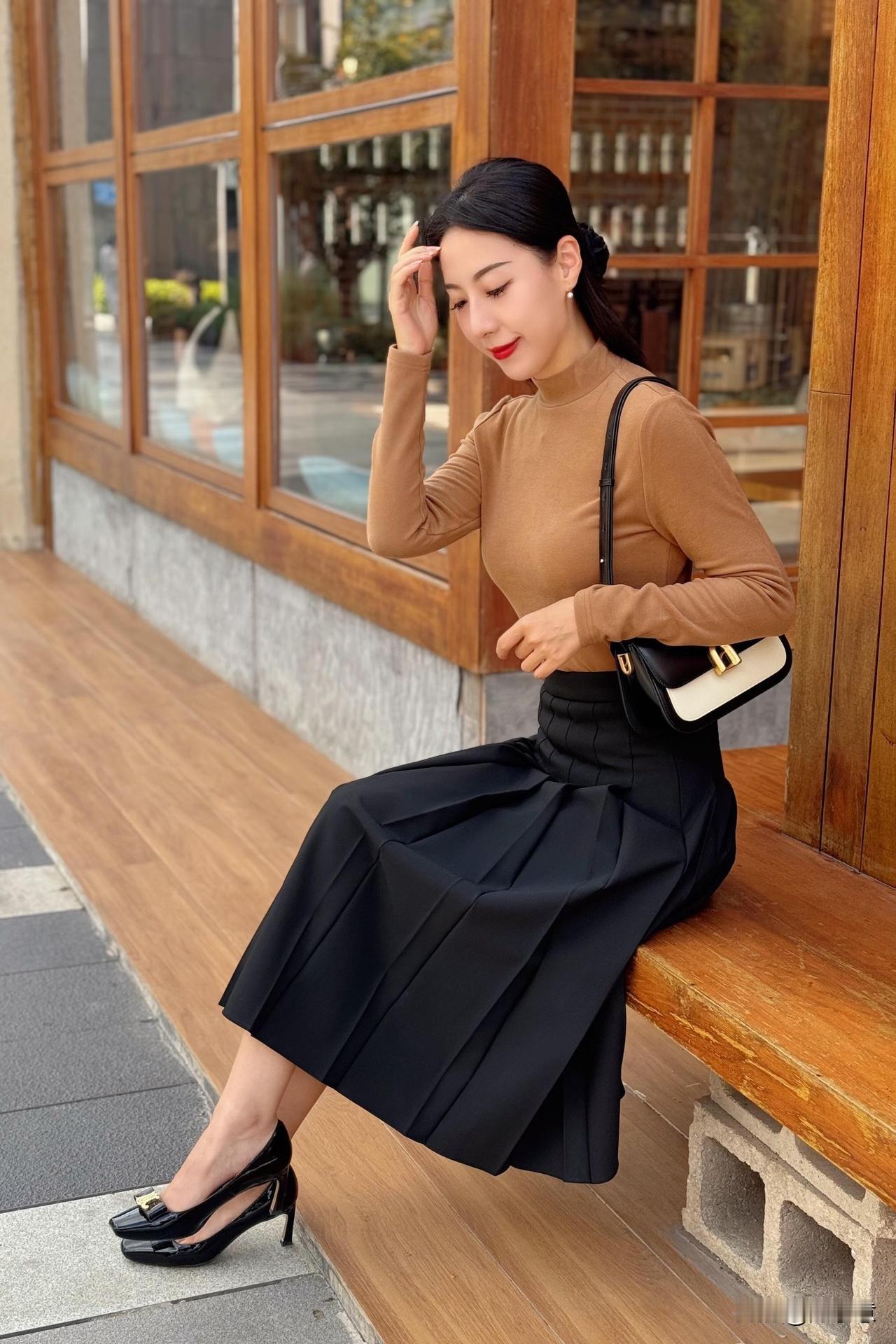 冬日氛围感🍁美拉德色系的午后 又到了美拉德色系的主场季节 今日ootd 也是和背景氛围呼应 小高领的柔软感 像是在秋季午后喝了杯暖暖的燕麦咖啡☕️ 都市轻熟女 职场不费力
