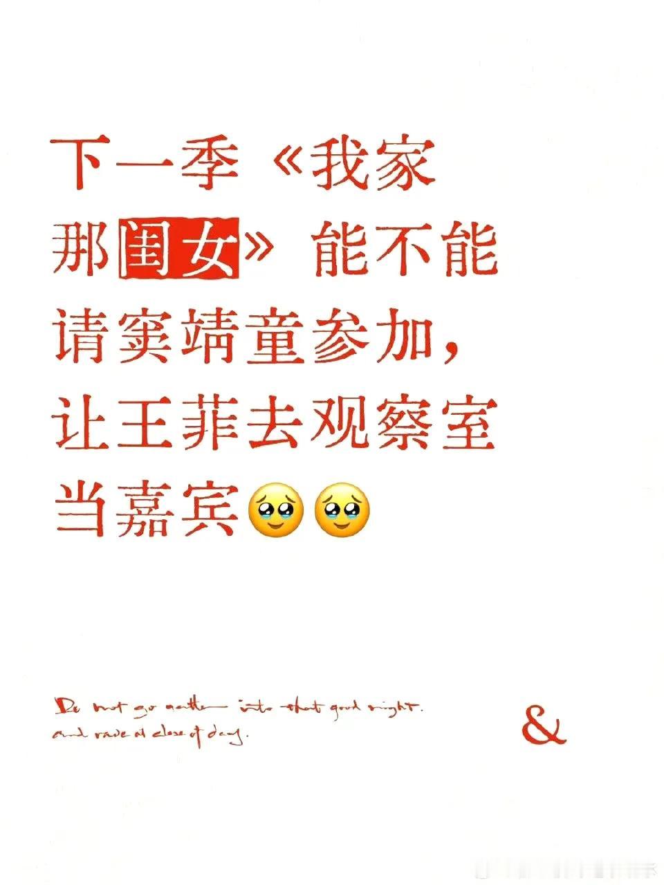 下一季《我家那闺女》能不能请窦靖童参加,请王菲去观察室当嘉宾🥹🥹