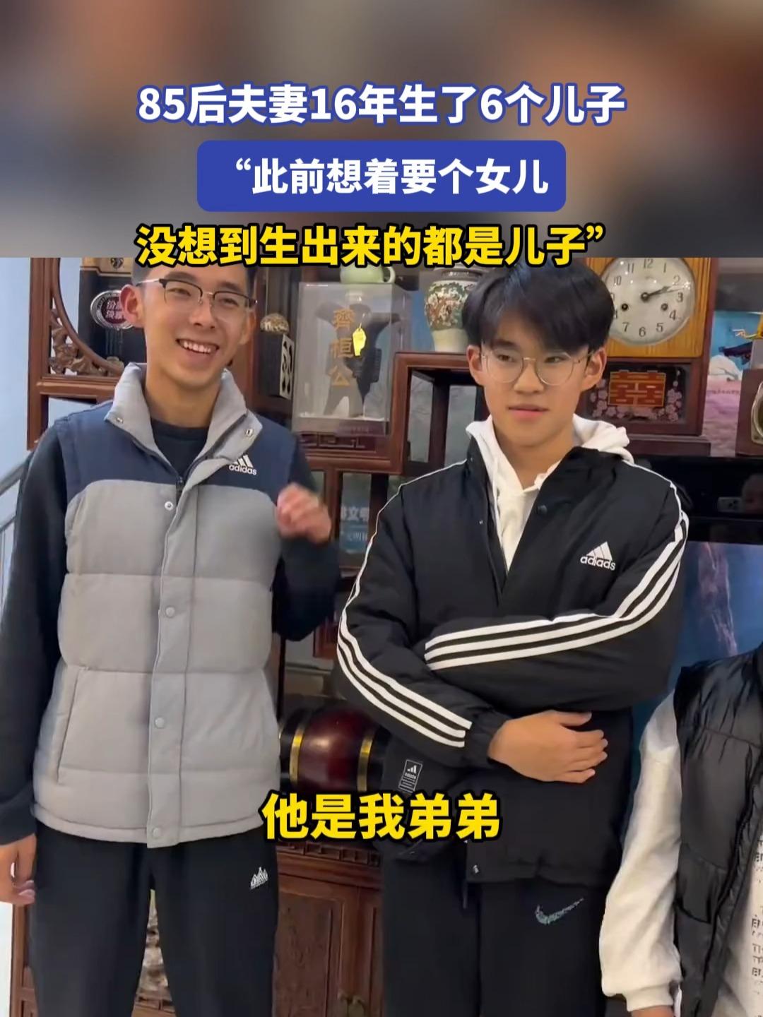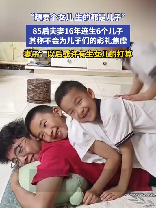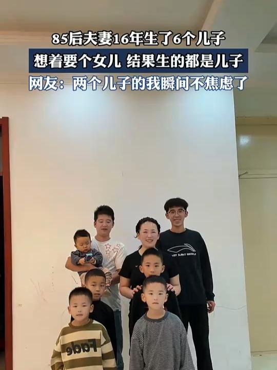 山东临沂贾家庄村的这对85后夫妻,毅力着实令人钦佩!38岁的张女士和39岁的丈夫,16年间生育了6个儿子。原本他们渴望能有个女儿,可命运弄人,迎来的全是儿子。这六个儿子分别于2008、2017、2018、2020、2021、2024年出生。 张女士表示,照顾孩子确实耗费精力,但孩子们是上天赐予的美好礼物。儿子们平日里打打闹闹,却也相互照顾,日子过得十分开心。 有人担忧他们未来要面对高额彩礼的压力,张女士却毫无焦虑之感,认为过好当下便足矣。在他们村里,多数家庭只有两三个孩子,而他们家是儿子最多的。丈夫经营着一家餐饮店,孩子们吃饭十分便利,一家人还会在短视频平台分享生活点滴。 至于未来能否迎来女儿,就全看缘分了。这一家人的故事,实在是特别! 山东80后夫妻 贾家有囍 贾家庄妇联