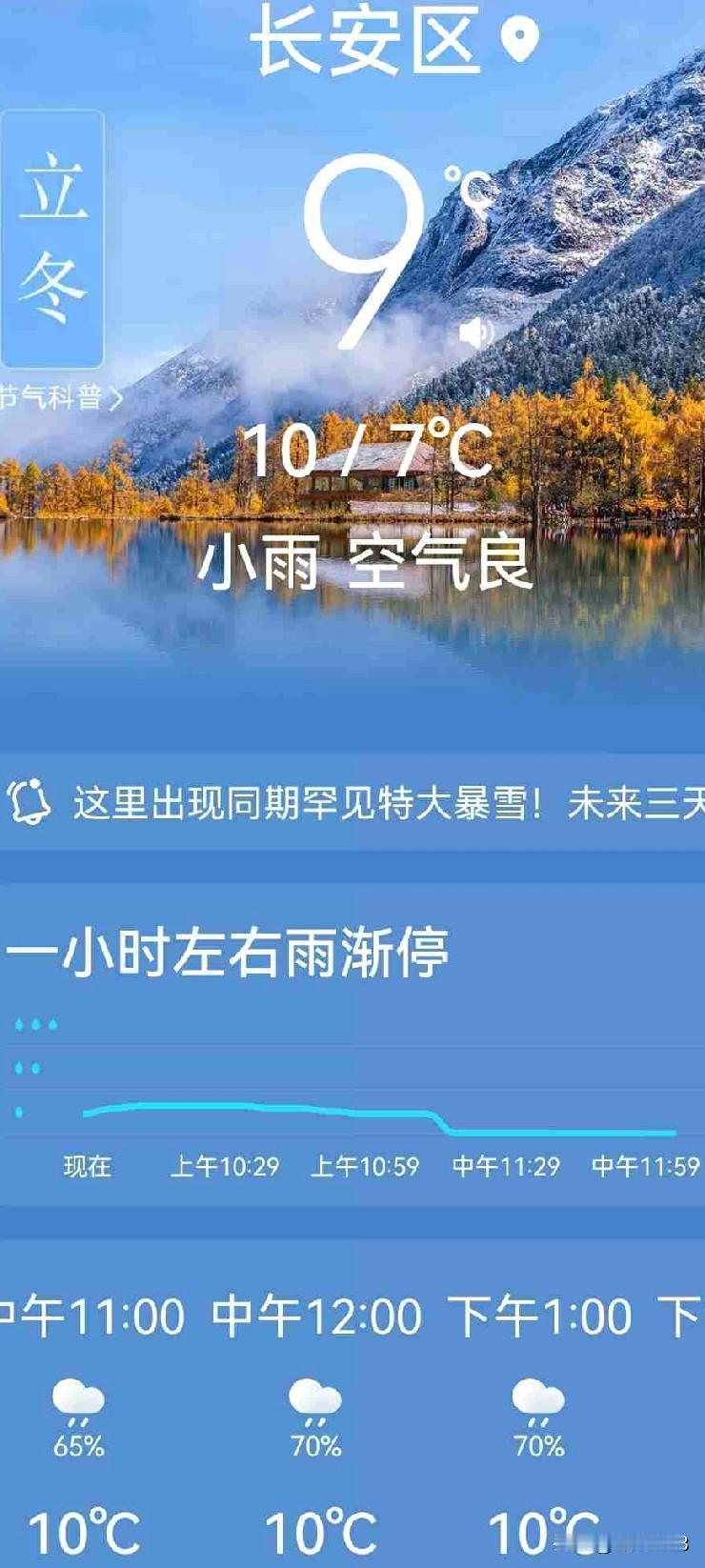 我的今日状态:😁轻松愉快 我这里的天气:🌧下雨 友们上午好! 今天是11月7日,星期五。 石家庄的空气质量良, 天下起了小雨。 今天立冬, 它是二十四节气的第十九个节气。 立冬晴天比下雨好, 传统农谚说到立冬是晴天,预示着冬季会少雨雪、又暖和,利于农业和生活。 而立冬这天下雨, 则预示着冬季会多雨雪、又寒冷。 也会导致作物受损, 下雨雪后道路会泥泞,对我们的生活造成不便。