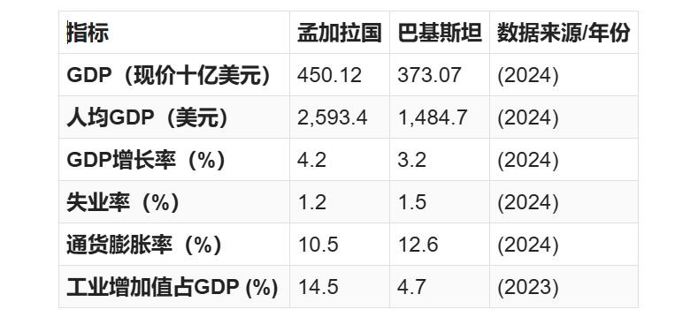巴基斯坦和孟加拉国这两个国家,曾经是一体的。如同苏丹一样,它分裂了。如果不分裂,它将是世界上仅次于中国和印度的人口第三多的国家。4.1亿人口,这是一个恐怖的存在。这个包围着印度的国家,将完全不惧印度的威胁。然而,似乎是必然的,南亚不允许有这么一个存在。 孟加拉国是从巴基斯坦分裂出来的一部分,很多人会这样想。但事实上,谁料想得到,这个分裂出来的一部分,它的经济总量已经超过了原来块头更大的一部分。2022年,巴基斯坦GDP3600亿美元,而孟加拉国则达到了4600亿美元。超出了一个安哥拉的分量。这是巴基斯坦很难追上的分量。 孟加拉国的经济成功,并非偶然,主要得益于以下几个方面: 聚焦出口导向的工业化:自1980年代起,孟加拉国就确立了以服装纺织业为核心的出口导向战略。通过设立出口加工区、提供税收优惠等措施,成功承接全球产业转移。如今,它已成为全球第二大服装出口国,该行业贡献了其出口总收入的八成以上。 相对稳定的政策环境:与巴基斯坦相比,孟加拉国政府的政策连续性更强。自2009年谢赫·哈西娜执政以来,政府持续推动基础设施建设(如由中国承建的帕德玛大桥)和吸引外资,为经济发展提供了稳定的预期。 有效利用劳动力优势:孟加拉国通过职业教育体系培养了大量产业工人,并成功将女性劳动参与率提升至较高水平,为服装业等劳动密集型产业提供了充足的劳动力。 政治动荡与政策不稳:巴基斯坦文官政府与军人政府频繁更替,导致经济政策缺乏连续性。每届政府都倾向于推行新的经济路线,使得投资者信心不足,改革措施也难以落实。 严峻的安全与能源问题:长期面临恐怖主义威胁和印巴地缘冲突,迫使国家将大量资源投入军事领域。同时,国内电力短缺问题严重,直接制约了工业生产。 宏观经济稳定性不足:巴基斯坦长期面临财政赤字高企、外债沉重、外汇储备枯竭等问题,被迫频繁向国际货币基金组织(IMF)求助。其税收体系也不健全,征税率低于孟加拉国。 虽然在国际上孟加拉国的影响力远远不及巴基斯坦。但孟加拉国像一位稳扎稳打的“长跑选手”,已在正确发展的跑道上积累了优势,而巴基斯坦,潜力巨大但仍待破局。