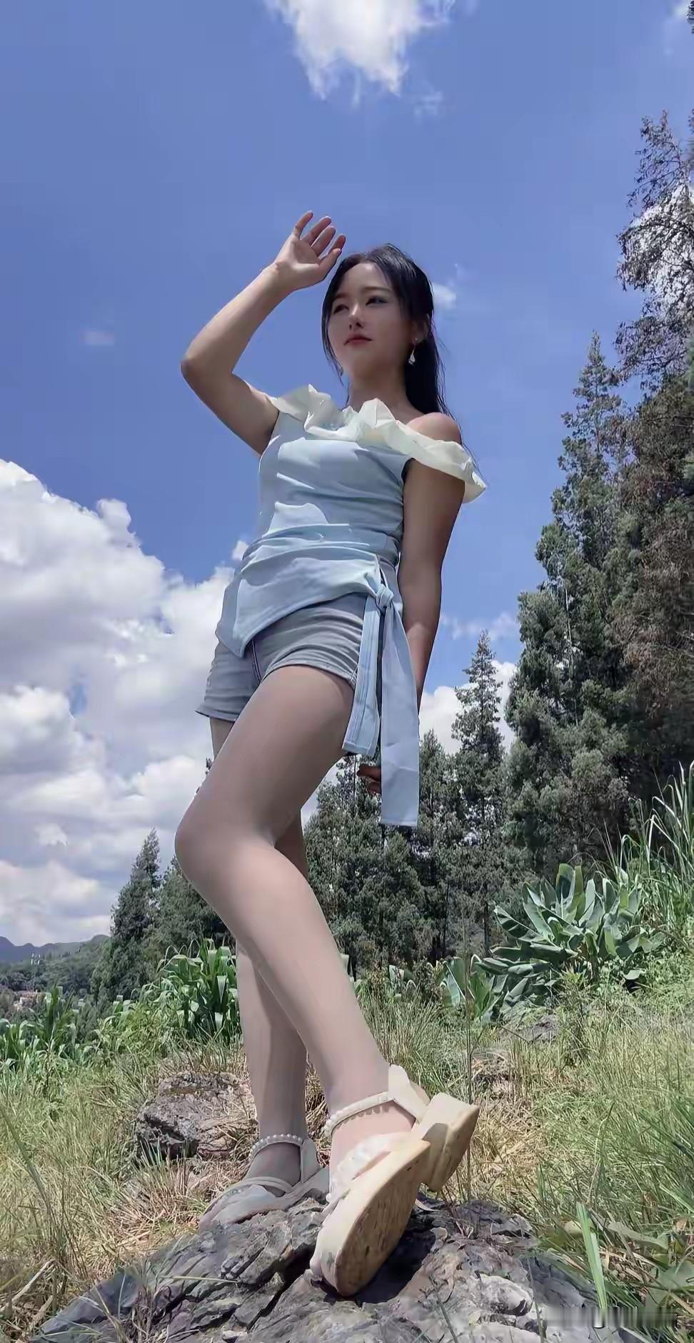夏日清新穿搭,蓝白相间,阳光下的美好时光。