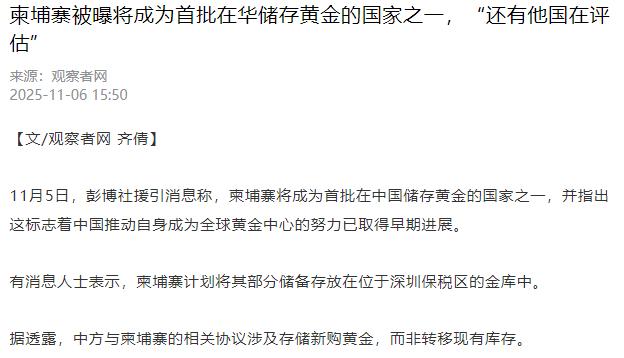 柬埔寨首相洪玛奈做出了明智的选择。据报道,柬埔寨将成为首批在中国储存黄金的国家之一。 柬泰边境那点事儿闹了有一阵子了,柬埔寨曾试着向美国靠拢,甚至提名特朗普为诺贝尔和平奖候选人。结果冲突没解决,边境排雷工作还停了摆,等于忙活半天啥实际好处没捞着,反而把精力耗在了不靠谱的方向上。 现在转头把黄金存在中国,给自己留了个后路,这才是摸准了国际金融的脉门。 要知道柬埔寨全国虽然只有54吨黄金储备,却占了其外汇储备的四分之一,相当于家里四分之一的硬通货家底,选存放地显然在怎么谨慎都不为过,而最终挑中了深圳,显然也是经过了实打实的盘算。 过去这些年,各国黄金储备都习惯性往伦敦、纽约送,好像那才是保险箱本箱,可现在这保险箱早就不保险了。 美国和西方国家动不动就把金融当武器使,谁要是不合心意,存那儿的资产说冻结就冻结,俄罗斯的例子就摆在那儿,哪个国家不得提心吊胆? 柬埔寨这回算是看透了,与其把家底放在可能随时被人卡住脖子的地方,不如交给靠谱的邻居。深圳保税区那个金库不是普通仓库,挂在上海黄金交易所名下,交易、清算、托管一套龙服务,硬件软件都齐活儿,比那些动辄搞制裁的西方金库实在多了。 而且央行已经连着24个月增持黄金,官方储备稳稳站在2300吨以上,自家都在不停加仓,说明这里的安全性和专业性经得起考验,柬埔寨把黄金放这儿,相当于把钱存进了信誉过硬的银行,比之前押注西方靠谱多了。 这两年全球的央行都在忙着“黄金搬家”,新兴市场国家更是大规模增持黄金,印度、土耳其甚至一些欧洲国家,都在把存在英美金库的黄金慢慢往回运,说白了就是不想再被西方拿捏。 柬埔寨这次虽然不是把老底子全搬过来,协议里说的是存新买的金条,但这信号已经很明确了——比起远在天边又江河日下的美英,还是中国这边更让人安心。 而且中柬关系那是多年的老交情,西哈努克时期就打下了基础,现在柬埔寨公主珍娜都快成新深圳人了,这种铁杆情谊可不是表面功夫。 作为“一带一路”沿线的重要国家,把黄金存在中国,不光是资产安全有了保障,更是给两国合作添了层硬通货背书,以后在经贸、基建等领域合作起来,腰杆都能更硬些。 更关键的是,中国正在打造自己的黄金交易生态,今年还在香港设了第一个境外黄金交割库,等于在内地和全球资本之间搭了座桥,深圳这个金库就是其中重要的一环。 上海黄金交易所还计划扩大离岸金库网络,搞更多人民币计价的贵金属产品,柬埔寨把黄金存在这儿,等于提前搭上了人民币国际化的快车,以后用黄金结算或者跟中国做交易,都方便多了。 彭博社报道说,已经有其他国家央行也开始对上海金库感兴趣了,柬埔寨这是抢先一步吃了螃蟹,等于是在全球金融格局转变的当口,选对了队伍站对了位,这波操作可比之前提名诺贝尔和平奖实在多了。
