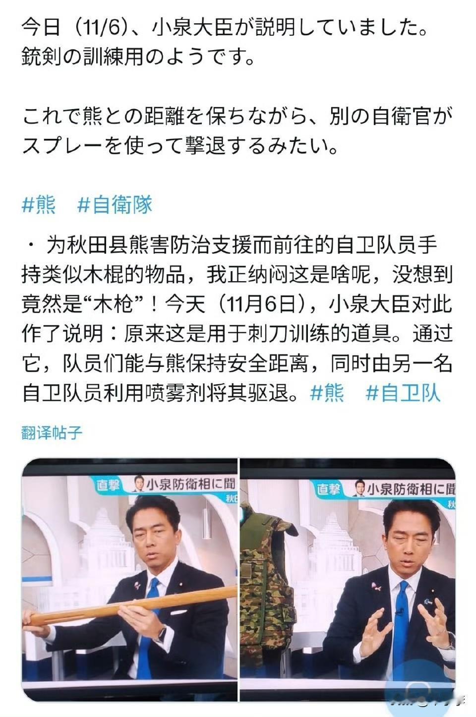 日本防卫大臣小泉进次郎展示日本驱熊计划[大笑][大笑][大笑]