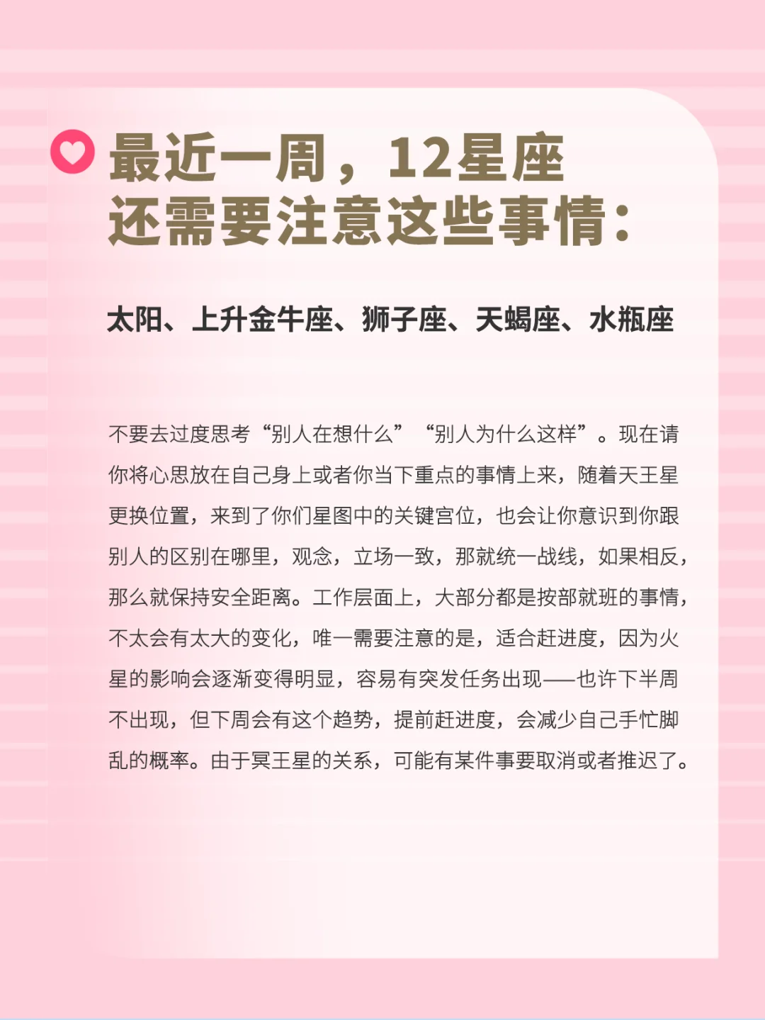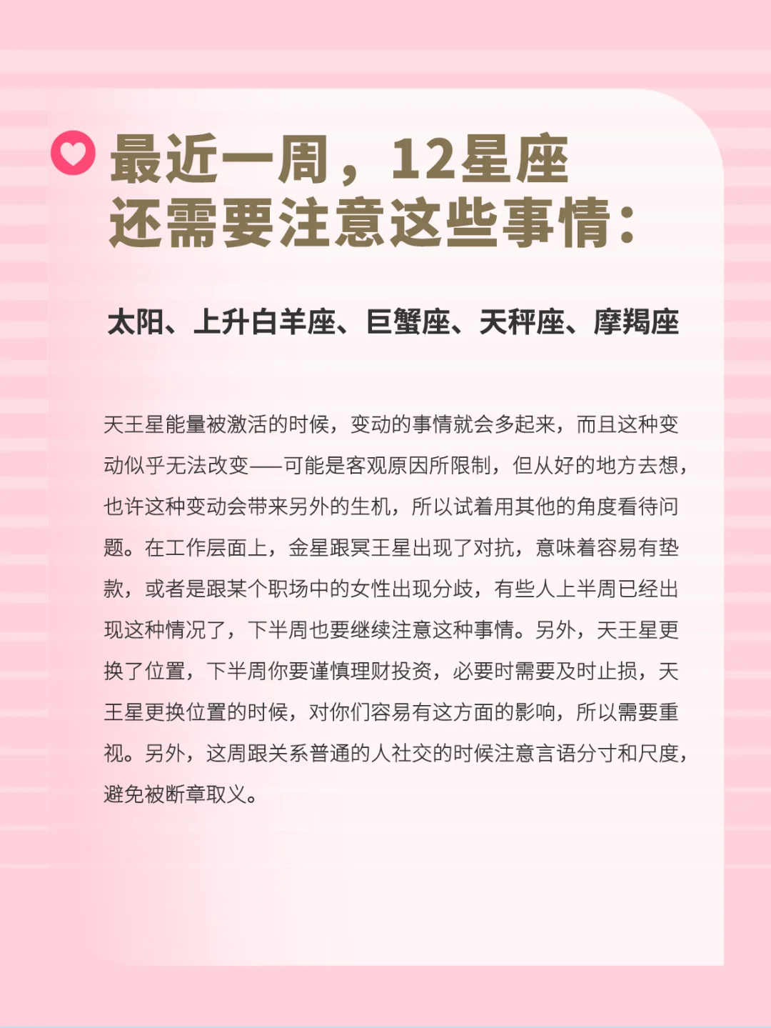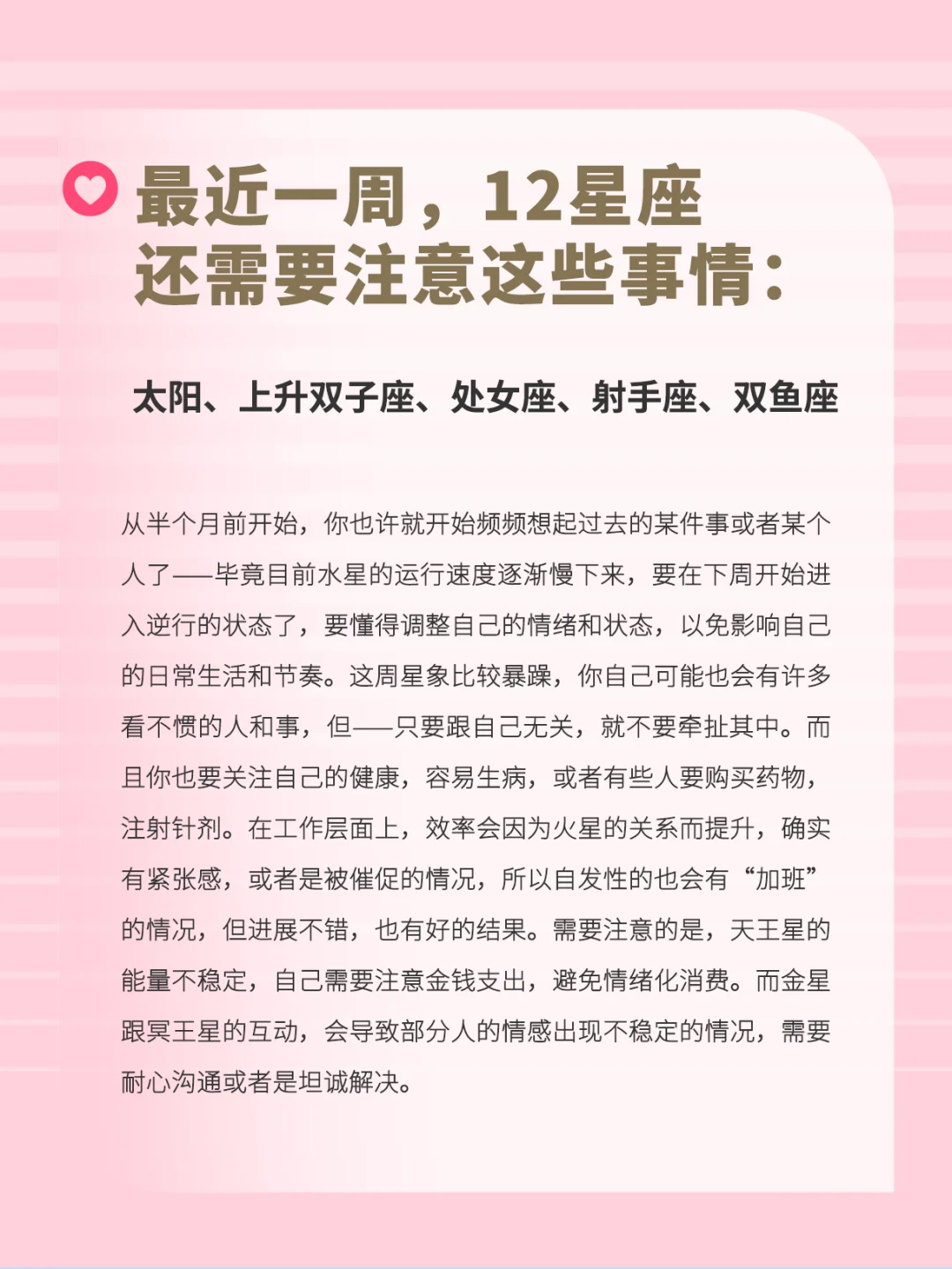 本周剩余几天至下周二期间,12星座还需要注意这些事情(请阅读图片)
