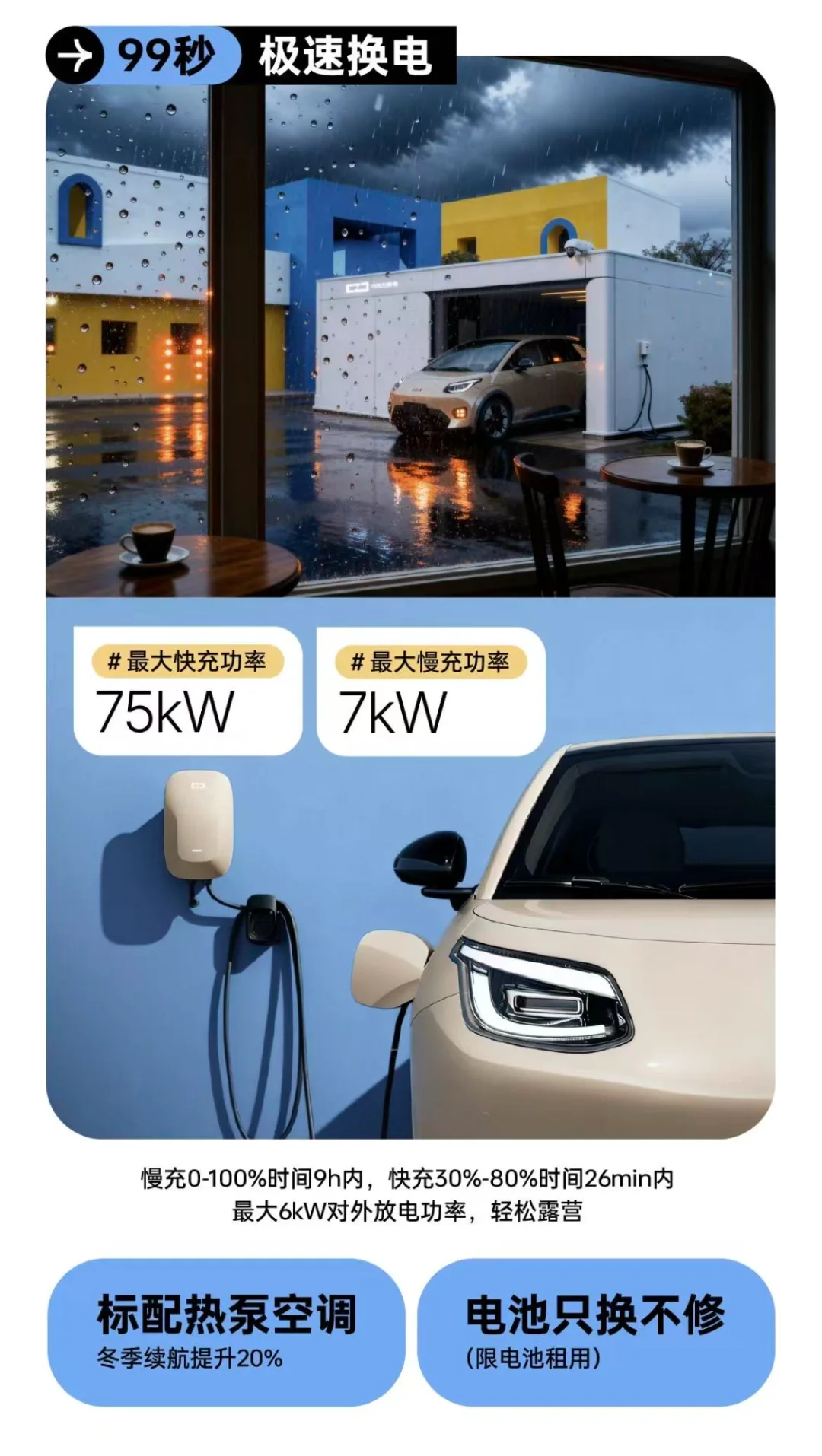 宁德时代巧克力换电+车电分离,属实有点香。99秒换电补能500km,省去了高速排队充电,下雨天冒雨插电的烦恼。而且每次换电都会对电池检测,基本上不用担心电池出问题安全感十足。车电分离-买车先买车壳,后面在根据自己需要选择买断电池还是租赁,听着确实挺新奇的,不过我觉得这个非常好,钱够就买断,钱不够就租,还省去了借钱硬凑的烦恼。