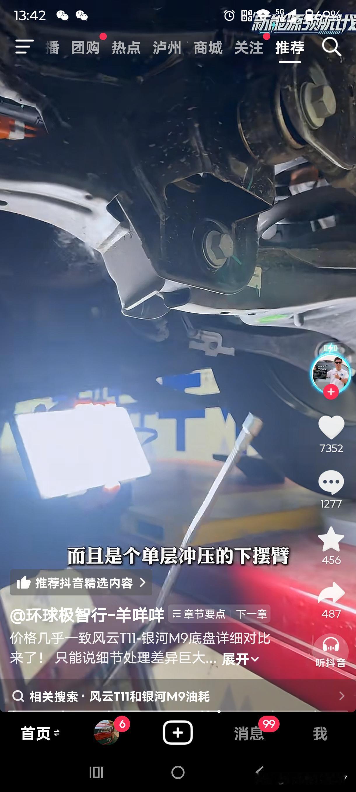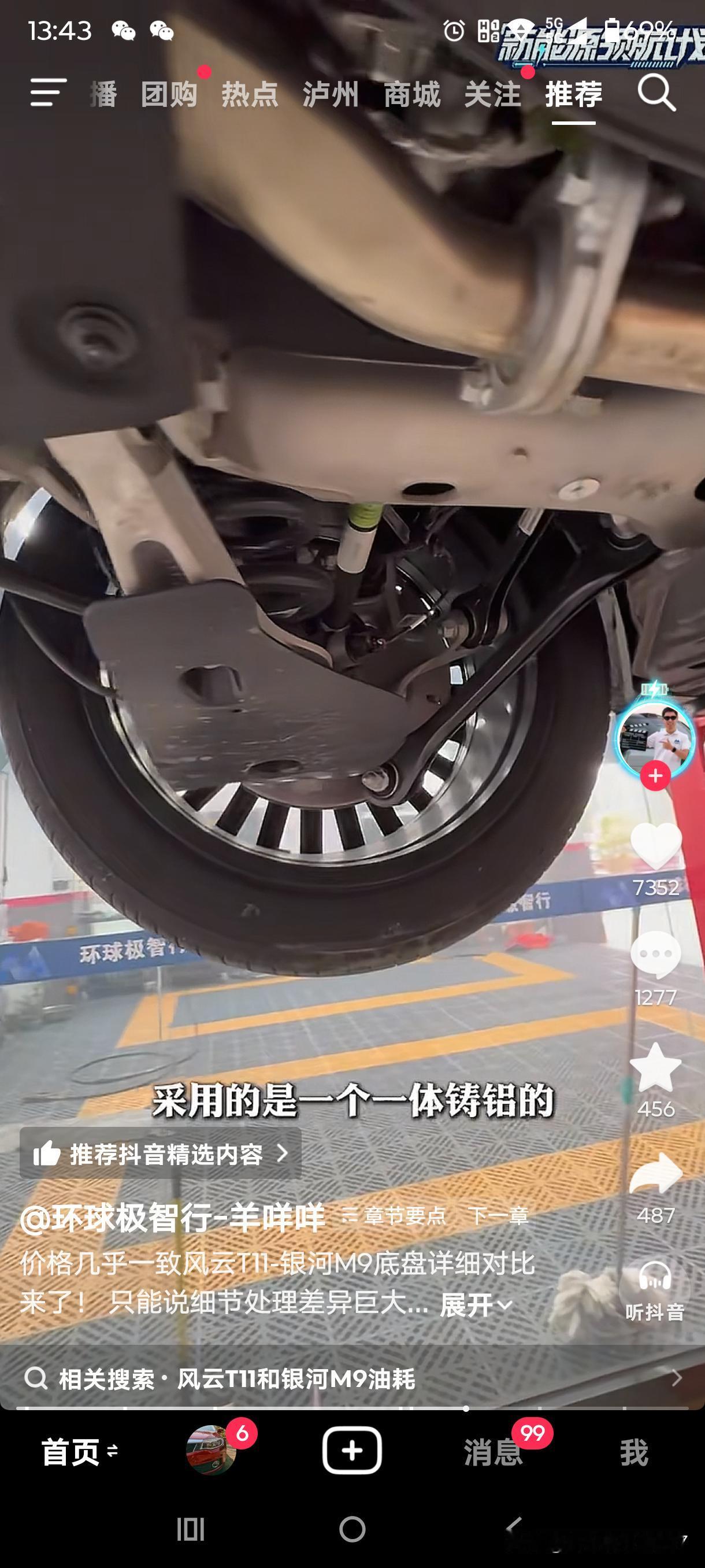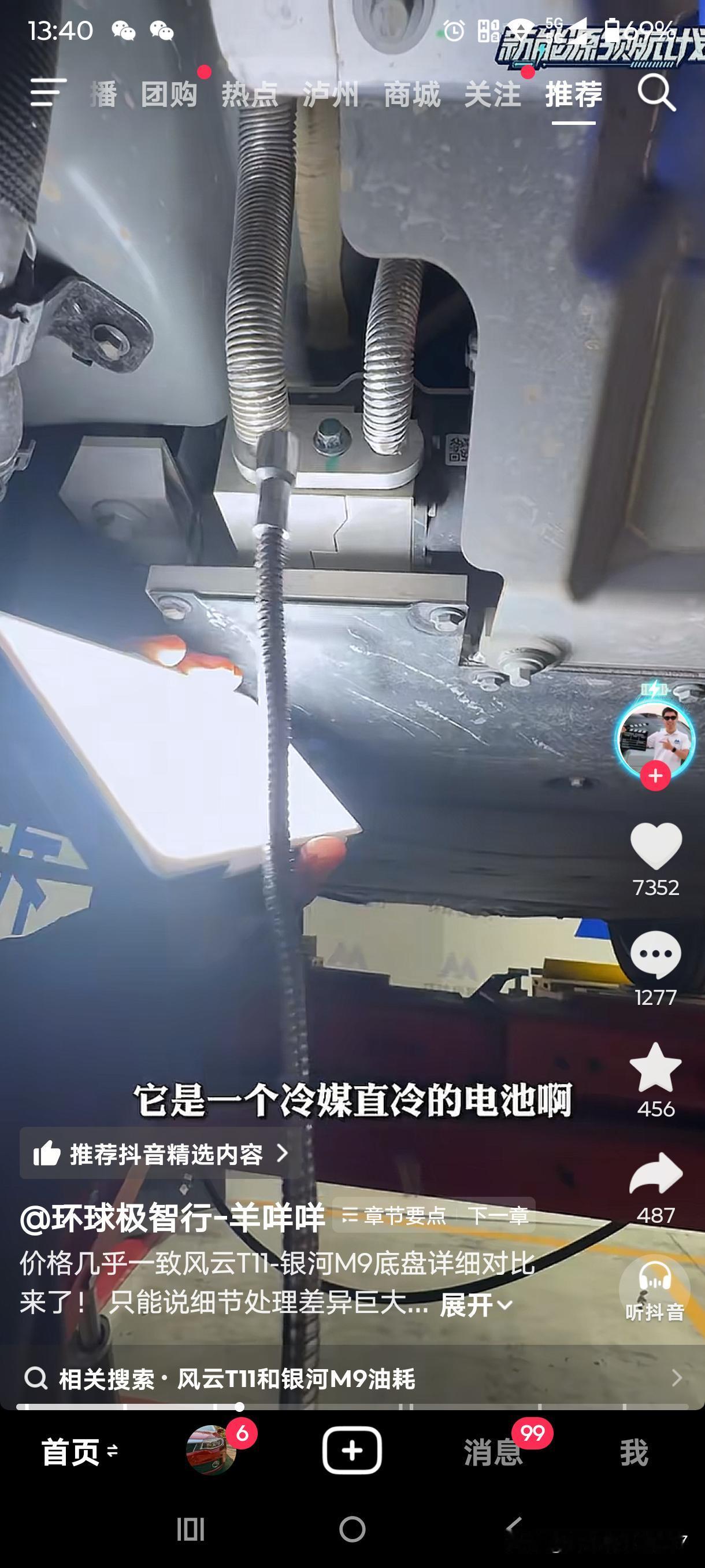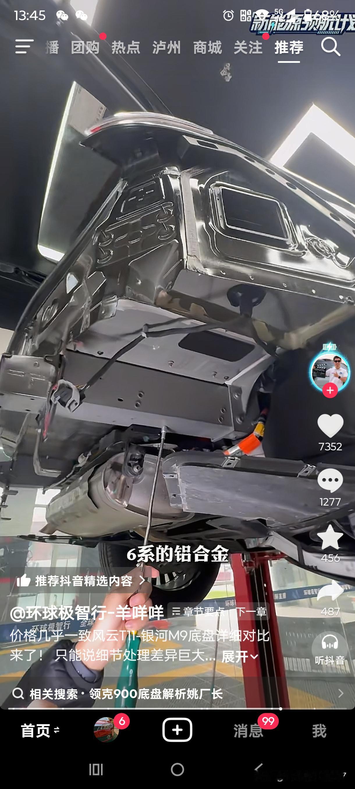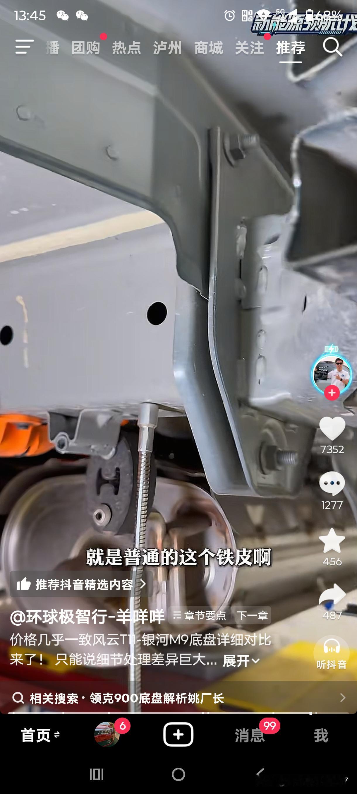 风云T11和银河M9的首拆来了。虽说羊咩咩的直播因被投诉而关闭,但总结视频还是发布了,这里截取了几个重点。 三大件最核心的差异在于,风云T11的电池散热采用液冷方式,电池侧面防护完备,排气管配备隔热瓦。银河M9则采用冷媒直冷,侧面没有防护,空出的空间恰好省掉了隔热瓦,可谓一举两得。此外,M9的电池向下凸出约3 - 4公分。 悬挂方面,T11和M9的前悬挂用料相近,但后悬挂差别较大。T11的后悬挂副车架、下摆臂和拉杆均采用铸铝材质。M9的后悬挂整体使用钢制材料,且下摆臂采用单层冲压工艺。这也无可非议,毕竟三十多万的问界M9副车架同样也是钢制的。 T11的后防撞梁、备胎下护板以及纵梁采用六系铝合金,并且可拆卸,维修成本较低。M9则是铁质且不可拆卸。 T11的轮拱装有毛毡隔音材料和止震板,M9仅使用简单的塑料。 以上是我截取的重点并附上图片,若想观看原视频,请打开抖音搜索“环球极致行”。