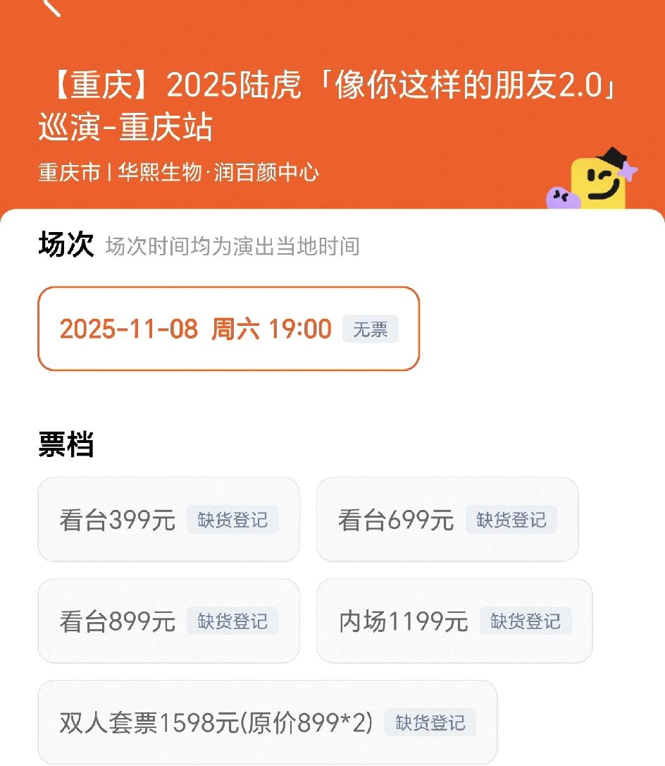 至少今天很快乐演唱会很成功,几万人的场馆座无虚席,这个周末再就业兄弟有三个同时开演唱会,陈楚生在武汉连开两场,苏醒在南京,陆虎在重庆。 陈楚生的售票情况是很早就无票了,陆虎也有幸在今天全部票面售空,唯独苏醒,这状况有点惨淡。 按理说苏醒今年在披哥表现不错,终究还是没能逃过人红歌不红的磨咒,很多人喜欢他却不想去看他的演唱会,他的综艺里的表现明显要优秀于他的演唱。 在《背后》节目里,苏醒说考主持人证,用三天时间极限刷题2500道,看样子这个证一定是通过了,或许他真的该转行了。 再就业兄弟六人,各人都该有各自的发展发向了!陈楚生 再就业演唱会 苏醒