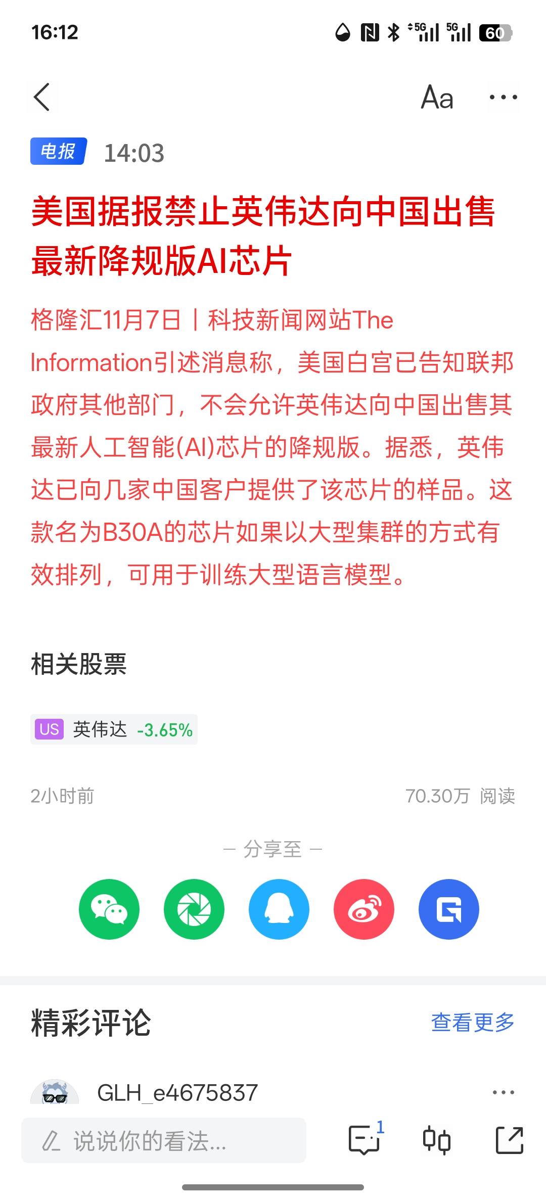 美国据报禁止英伟达向中国出售最新降规版AI芯片,对美国在中美科技竞争,我们不应该抱有幻想,我始终是想用芯片半导体高端科技遏制中国的发展,美科技竞争,美国现在享用芯片的优势来阻挡中国在科技领域的突破,中国势必会发展自己的芯片半导体,尤其是AI芯片,对于芯片半导体国产化的路线不改变,国产芯片的发展依然是要解决卡脖子的问题,对于当前资本市场芯片,半导体科技依然是主要发展的方向!中国目前在芯片领域的发展速度非常快,而且拥有创新的力度,很多国内企业也选择了国产芯片作为替代英伟达的芯片!