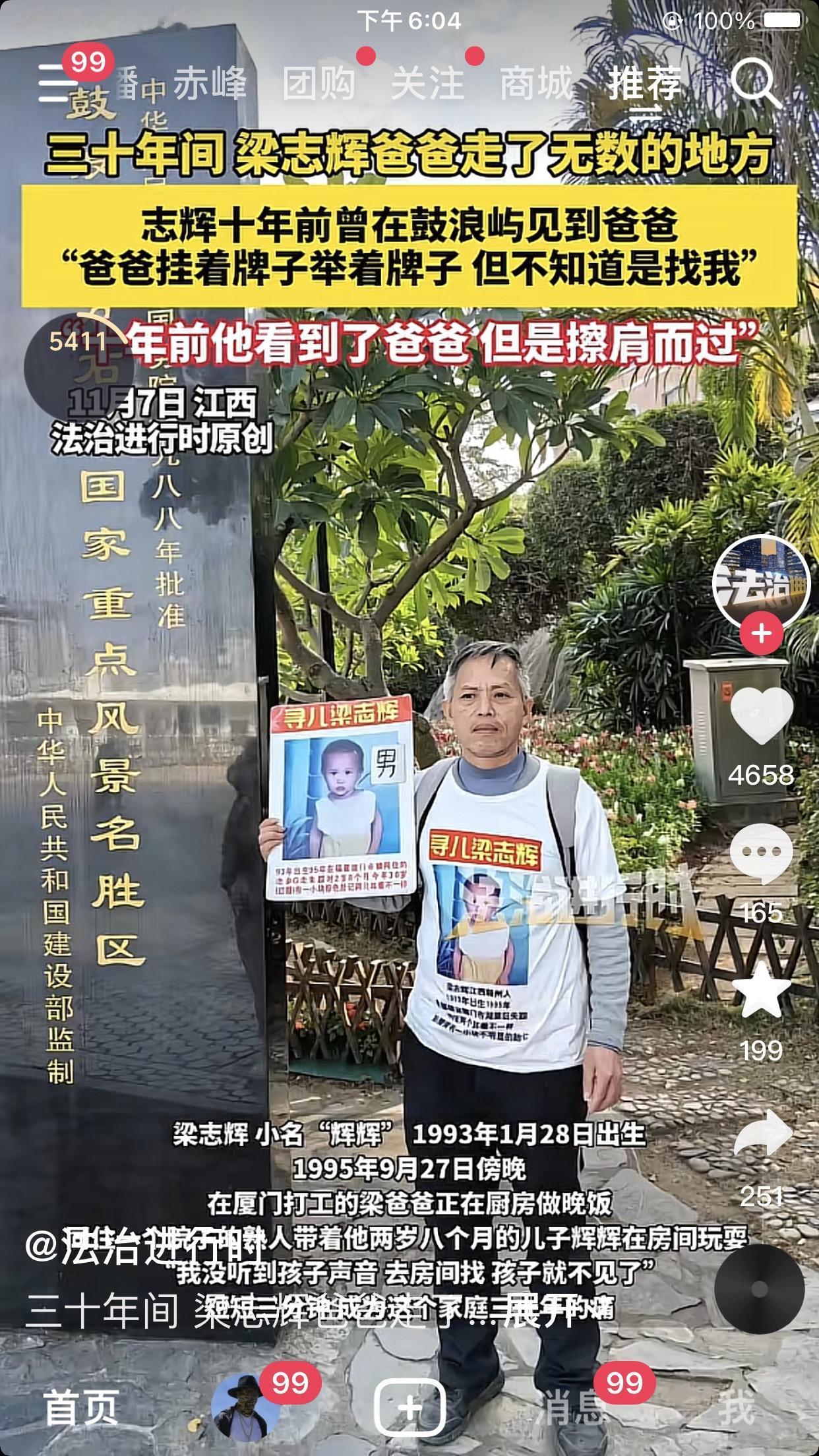 梁志辉十年前就见过爸爸,在鼓浪屿挂着牌子举着牌子,但是不知道是找我的。 如果10年前他去了解一下,他爸爸就不用再辛苦那么多年了,但是也不用怪他,因为她也不知道自己是被拐的。其实在这个寻亲路上有很多的阴差阳错,还有一个叫徐剑锋的他跟他自己的妈妈是网友还有微信。他妈妈去世那天发的讣告,他还评论了。然后这个事情在他妈妈去世了过了几年之后啊。通过DNA比对出来。他在他妈妈的坟前会哭死。这个更惨。 还好在有生之年找到了,不然又一个“徐建锋”就更遗憾了。