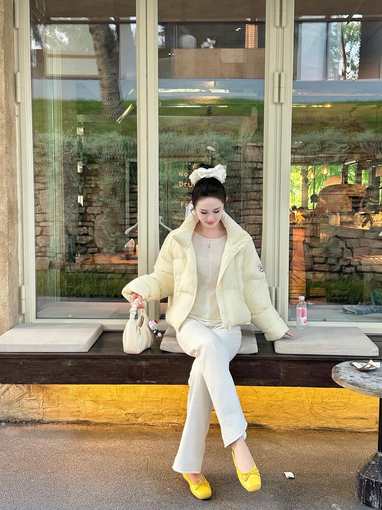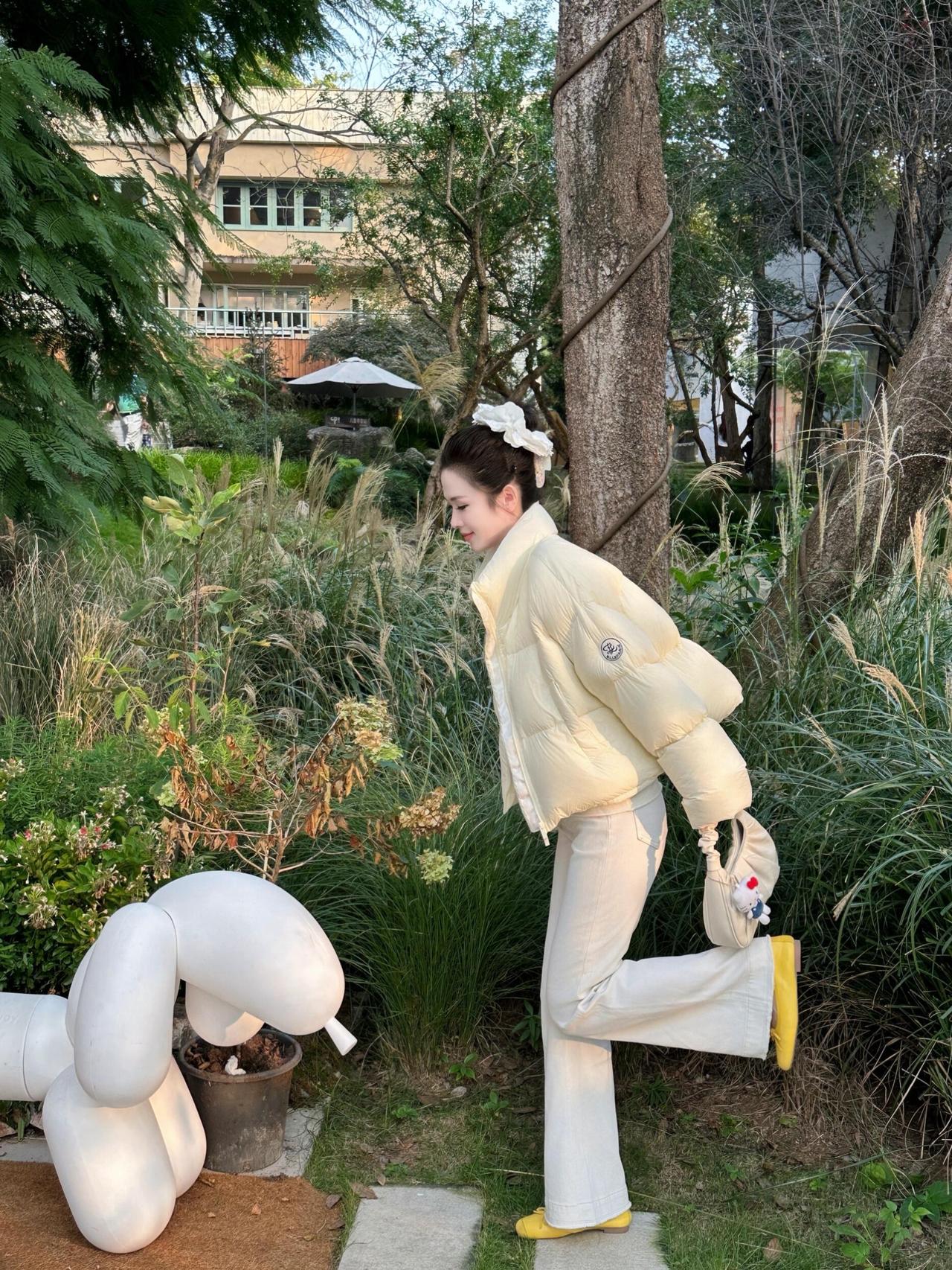 萌娃时尚穿搭指南黄色羽绒服+条纹裤超可爱时尚潮流穿搭萌娃休闲穿搭