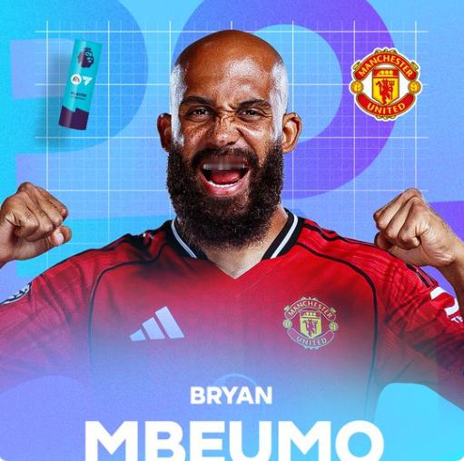 曼联球员布莱恩·姆贝莫被评为十月份的月度最佳球员。