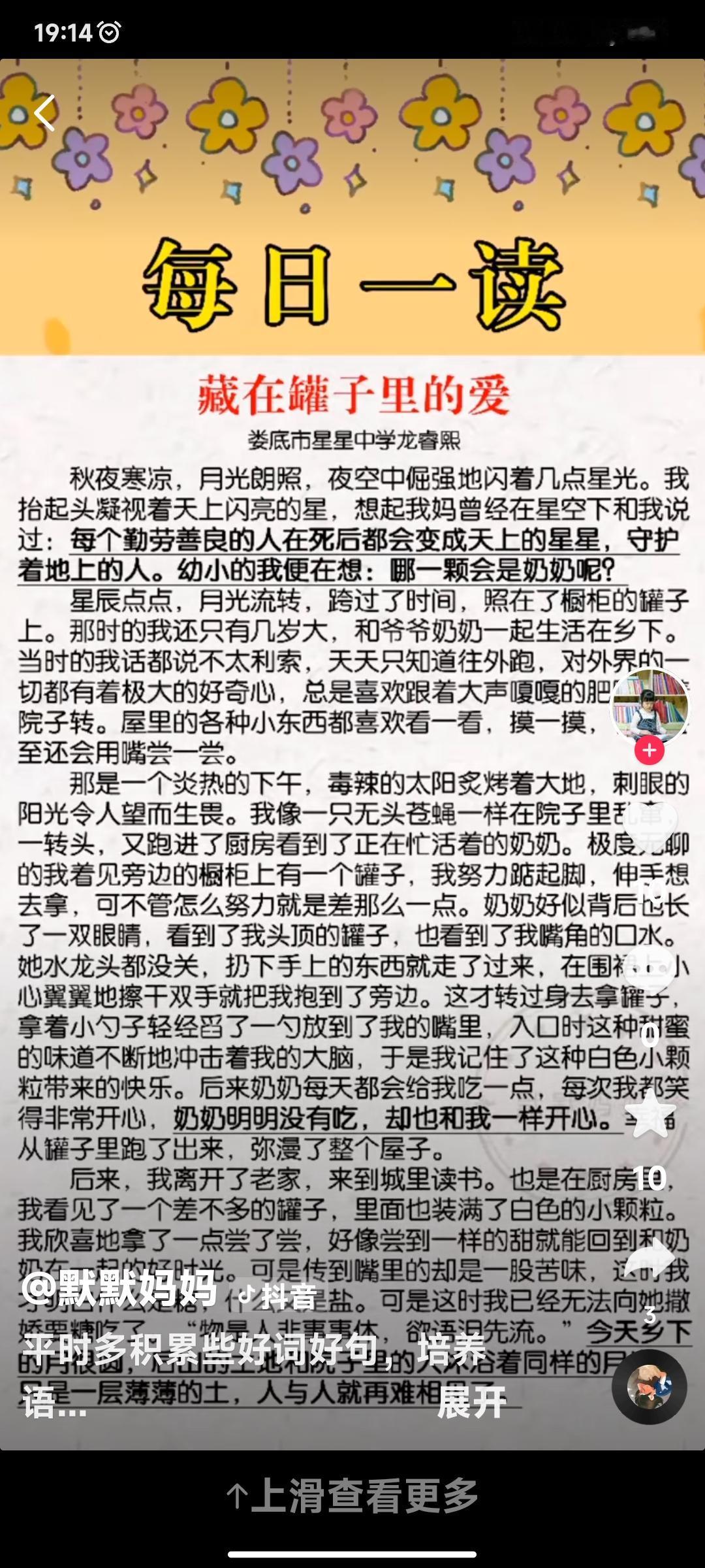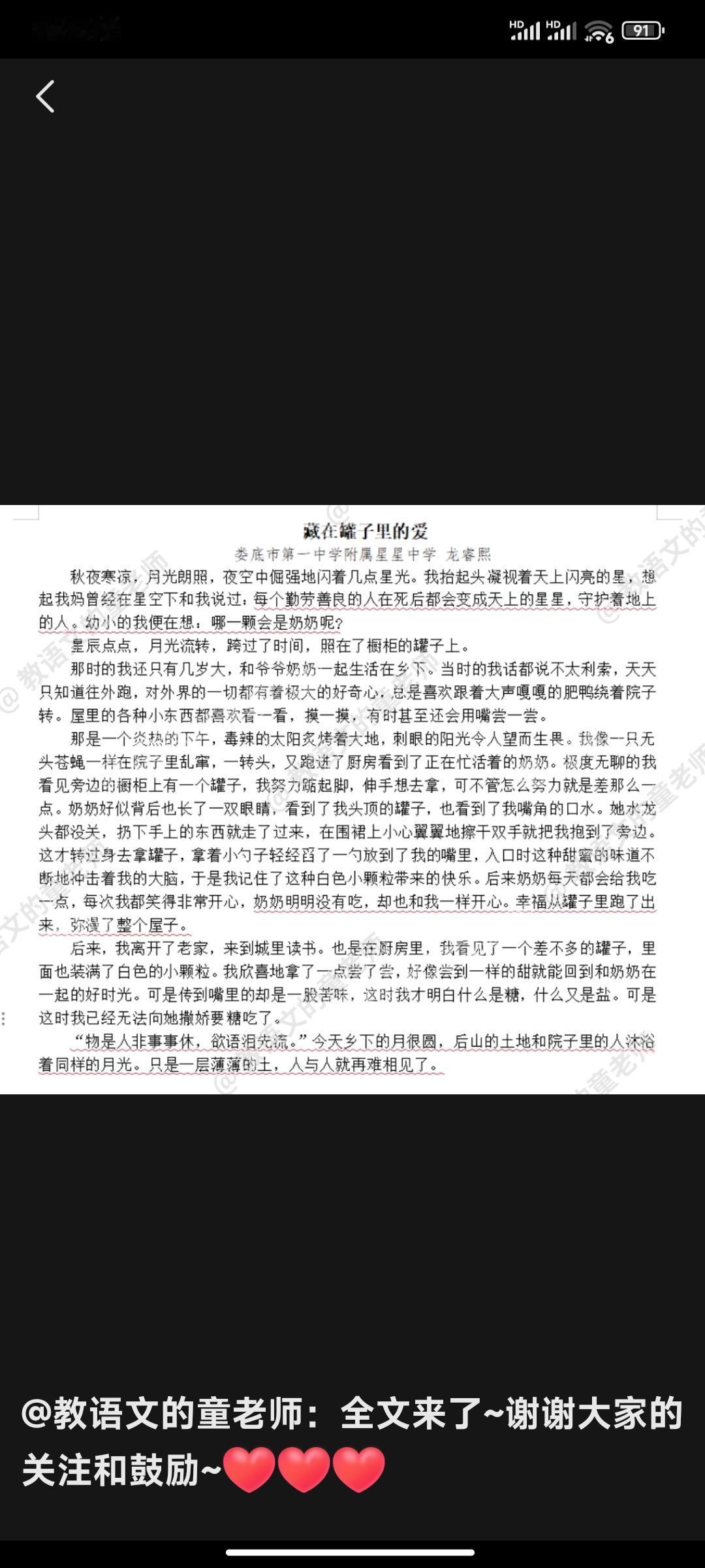 200万赞的作文里,藏着中国人最朴素的亲情密码 现在网上爆火的初三学生作文《藏在罐子里的爱》,没有华丽辞藻,仅凭200万点赞的热度,就足以证明它戳中了万千网友的泪点。 这篇来自湖南娄底少年龙睿熙的习作,用最平实的文字,记录了一段关于奶奶、罐子与爱的往事,却让无数成年人在评论区集体“破防”。 作文里的场景简单到不能再简单:乡下厨房的橱柜上,一个装着白色小颗粒的罐子,奶奶没关水龙头就飞奔过来抱起踮脚的孙儿,舀一勺“糖”喂进他嘴里,看着他笑,自己也跟着笑。 直到多年后在城里尝到同款罐子的“苦味”,少年才懂,当年让他念念不忘的甜,其实是最普通的盐。 而那句“只是一层薄薄的土,人与人就再难相见”,更是道尽了生死相隔的遗憾,让每一个有过类似经历的人感同身受。 它能爆火,恰恰是因为这份爱太过真实。 没有惊天动地的情节,只有奶奶围裙上的水渍、日复一日的投喂、不求回报的陪伴。 这些藏在日常细节里的付出,是无数中国人共有的亲情记忆。 有人想起外婆攒在铁盒里的饼干,有人念起妈妈藏在抽屉里的零食,有人感慨家里的旧罐子还在,可藏爱的人早已远去。 这篇作文就像一面镜子,照出了我们遗忘的温暖,也提醒着快节奏生活里的我们:最珍贵的爱,从来都藏在最朴素的日常里。 更难得的是,少年细腻的笔触里没有刻意煽情,只有发自内心的思念。 老师说他一向情感细腻,会悄悄给难过的同学递纸巾,会给流浪猫带猫粮。 正是这份对生活的敏感与真诚,让文字有了直击人心的力量。 这也让我们明白,最好的作文从不是技巧的堆砌,而是真情实感的流露;最好的教育,是教会孩子感受爱、铭记爱。 一篇200万赞的作文,不止是一个少年的思念,更是一场全民的情感共鸣。 它让我们想起那些藏在罐子里、铁盒里、旧书包里的爱,也让我们懂得,亲情从不会因为平凡而失色,反而会在时光沉淀中愈发珍贵。 趁时光还在,多陪陪身边的人吧,别让那些藏在细节里的爱,最终只停留在回忆里。 图片来自网络。 原创经典作文 真情流露作文