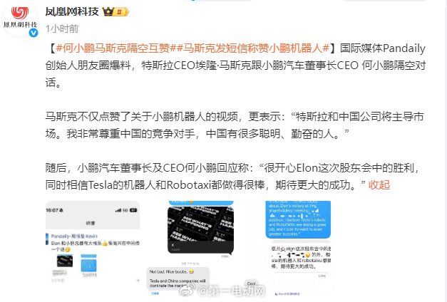 马斯克和何小鹏互相点赞,下个月何小鹏去美国要不要见面聊马斯克点赞小鹏机器人何小鹏