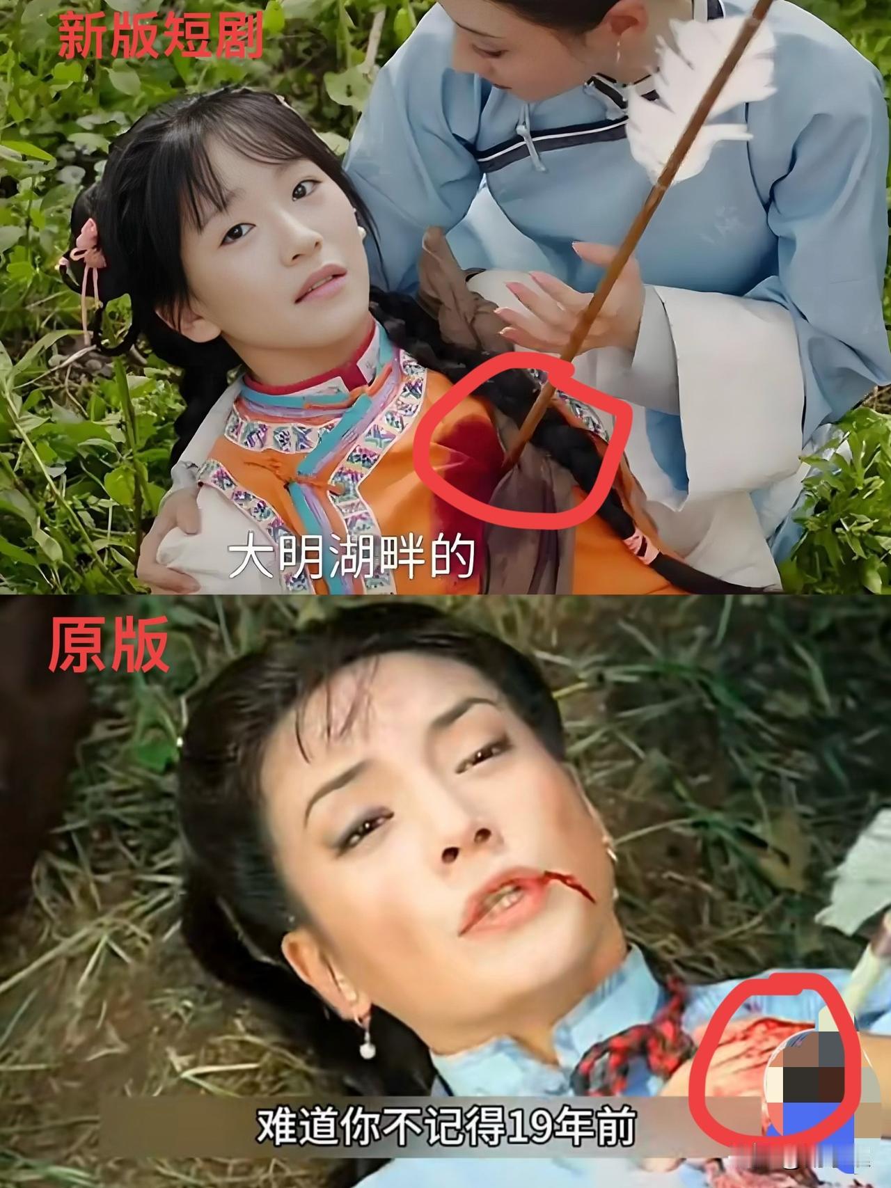 1290万打水漂了!原来影视剧也在追究速制品,可是这45天的辛苦,或许白忙了? 瞧,同样的围场中箭画面,新版的太假了,不光是直挺挺倒地,而且还脸上红润,毫无痛苦表情,伤口出血量少,甚至眼神很微妙! 再看老版的小燕子,一开始就显得高度紧张,中箭倒地后,脸上是万分痛苦,更用手捂着鲜血直流的伤口,脏兮兮的脸色煞白,嘴唇颤抖发紫,一切都显得那么逼真和到位! 一比果然吓一跳!虽然观众有“先入为主”的习惯,但这魔改仍多被认为,速度快导致了粗制滥造:剧情角色拿捏欠妥,造型雷人,演技浮夸,总之是很不买账,也很不理解! 唉,其实翻拍的大多不如原版的好看,就图个新鲜的回忆吧。 对此,您怎么认为的呢?