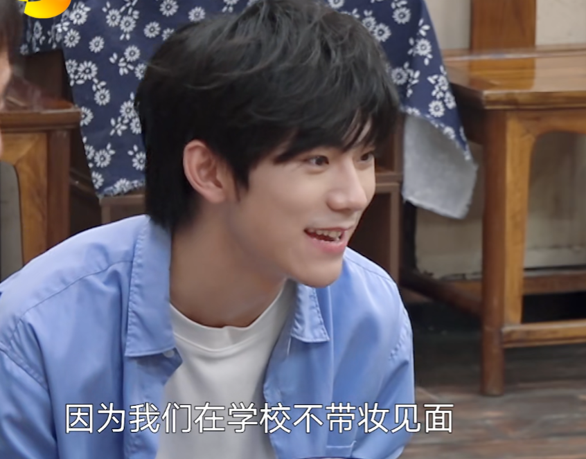 张子枫没戴近视眼镜,一开始没认出刘家祎,自己笑到不行;刘家祎机智回应:“咱们在学校,确实没带妆见过。”