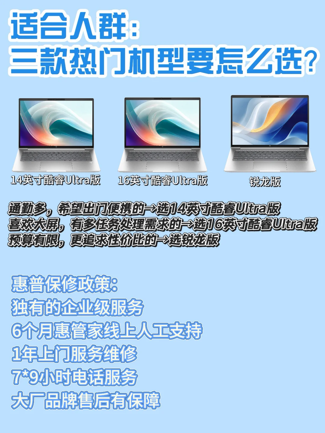 1️⃣通勤多,希望出门便携的→选14英寸酷睿Ultra版(轻 + 续航久,解放肩膀)