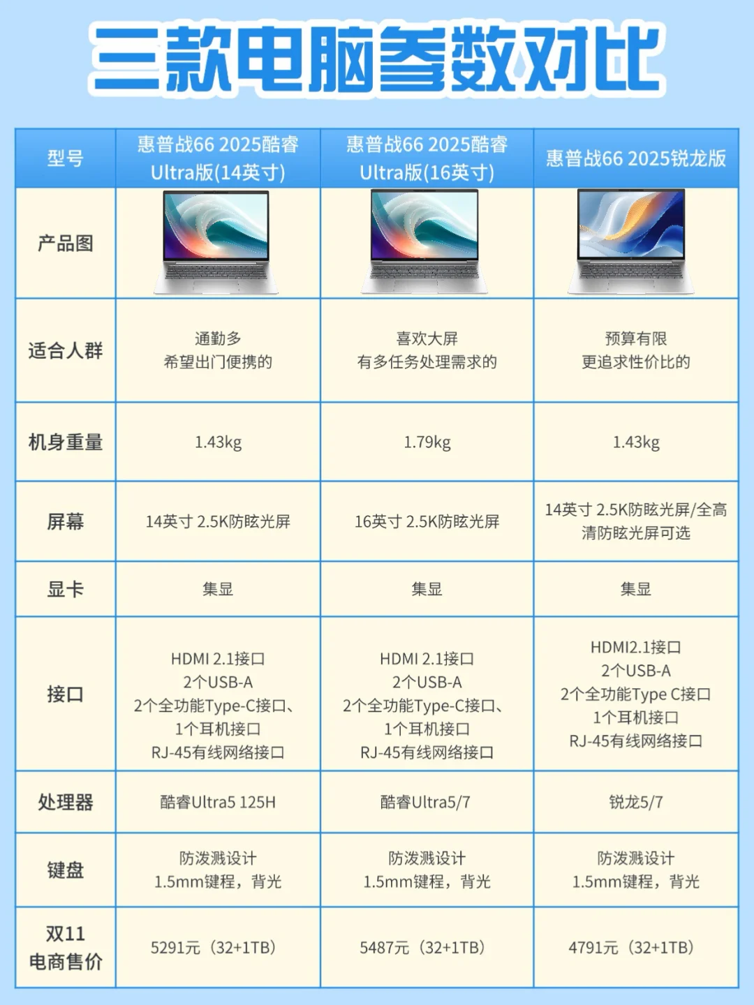 1️⃣惠普战66 2025酷睿Ultra版(14英寸):