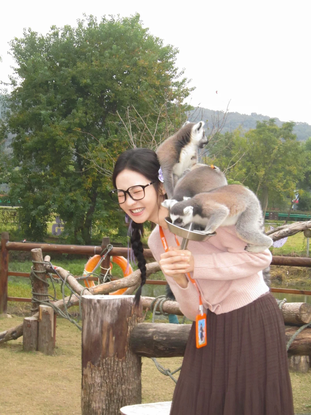赵今麦粉色毛衣搭配灰色百褶裙,甜美又不失灵动,黑色袜靴为整体增添精致感,是少女