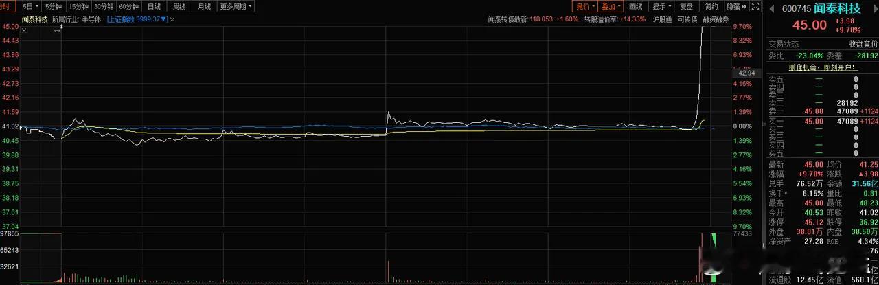 震惊!闻泰科技,尾盘直线拉涨停!赌周末消息,尾盘进货的!