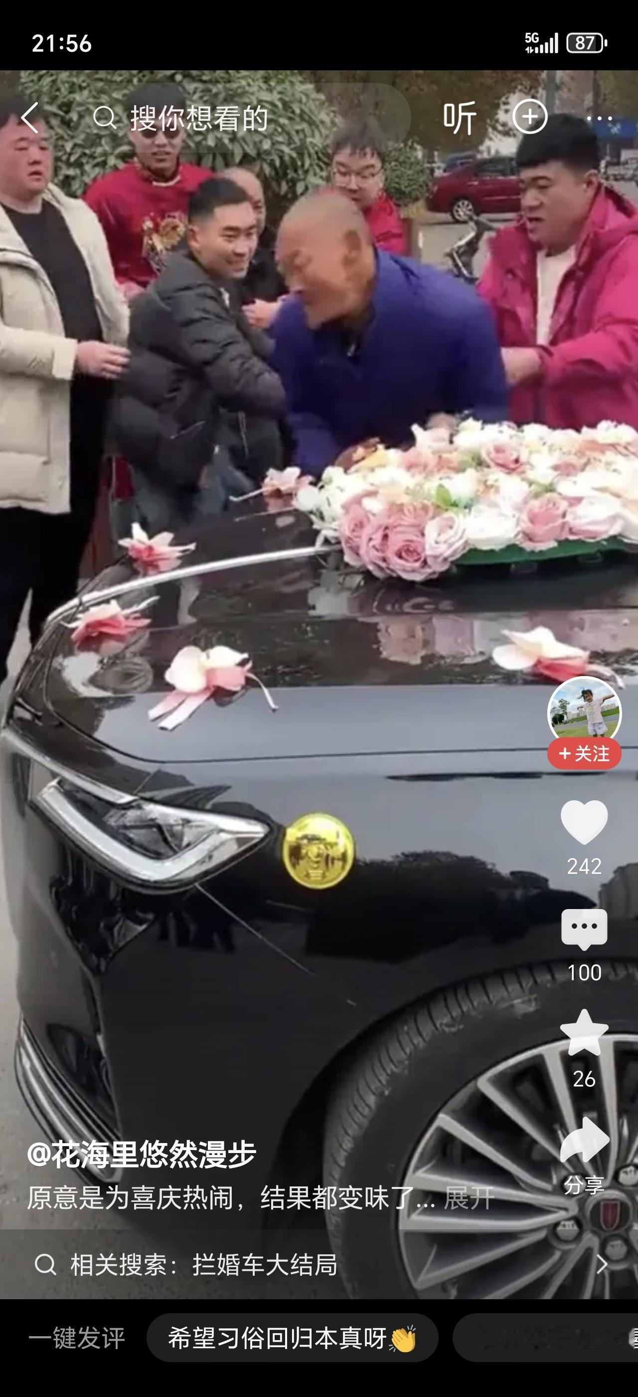 大喜日子被堵在路上,张口就要688?这到底是讨彩头还是拦路抢劫? 昨天参加朋友婚礼,迎亲车队直接被一群人截停。带头的嬉皮笑脸拍车窗:“图个吉利,给红包才能过!”红纸包着二维码,不给就给脸色看。我当时拳头就硬了。 记得小时候见过的讨喜糖,是街坊邻里真诚的祝福。现在倒好,成团伙作业了,不给钱就拦车,这和敲诈有什么区别? 真该让这些人明白,传统民俗不是违法的遮羞布。人家新婚大喜不是你们敛财的商机。把别人的宽容当软弱,迟早要把自己送进派出所。 祝福新人可以是一句暖心话,但绝不能成为道德绑架的筹码。真正的喜庆,从来都是你情我愿的善意流动。婚礼拦车要红包 开车拦路