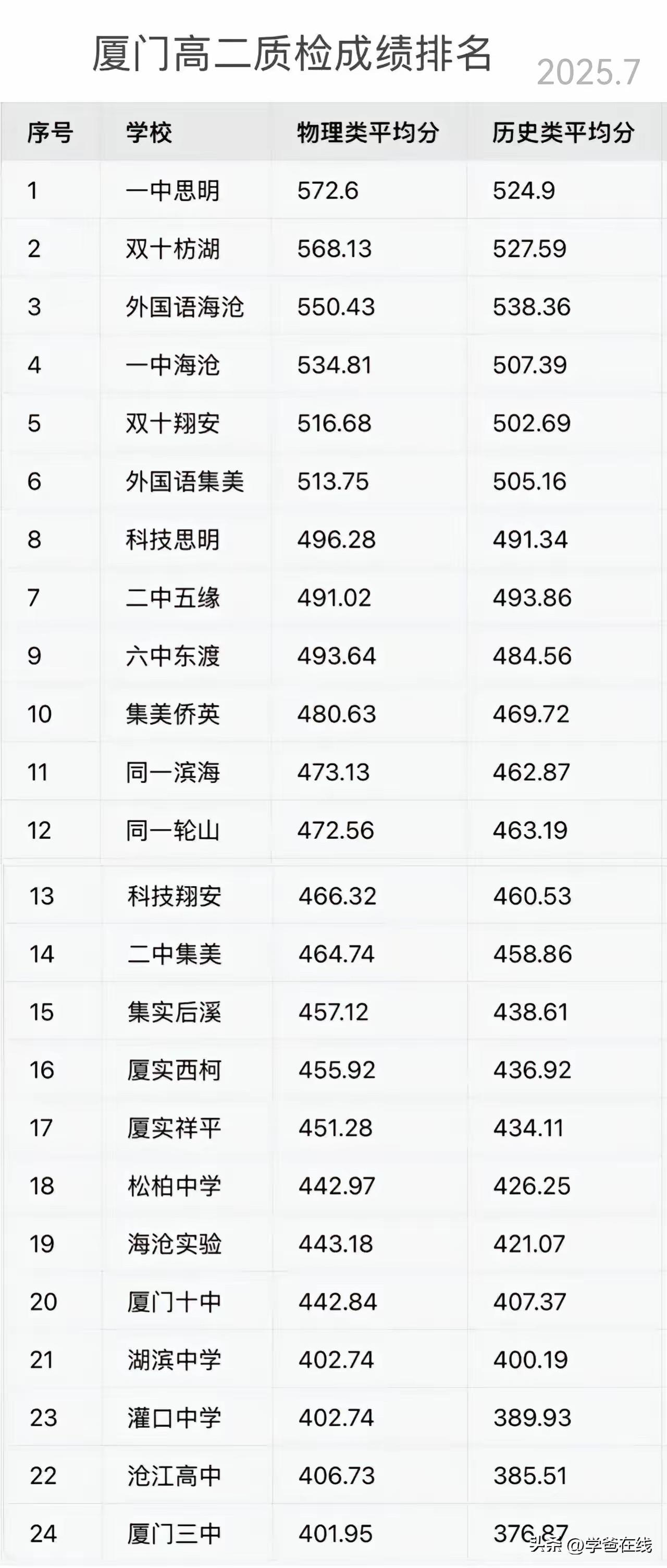厦门二中超过六中? 这张网上传出的厦门高二成绩表。一双外成绩基本上体验初中录取线。 二梯队高中,厦门六中被科技压过很正常,毕竟科技中考线就超过六中。二中竟然也超过六中,有点出乎预料。2024年二中的录取线比六中低一截:六中716分,二中711分。 是二中保送生发威了,还是五缘湾乃教育福地,二中过去后沾光了? 条友这一周