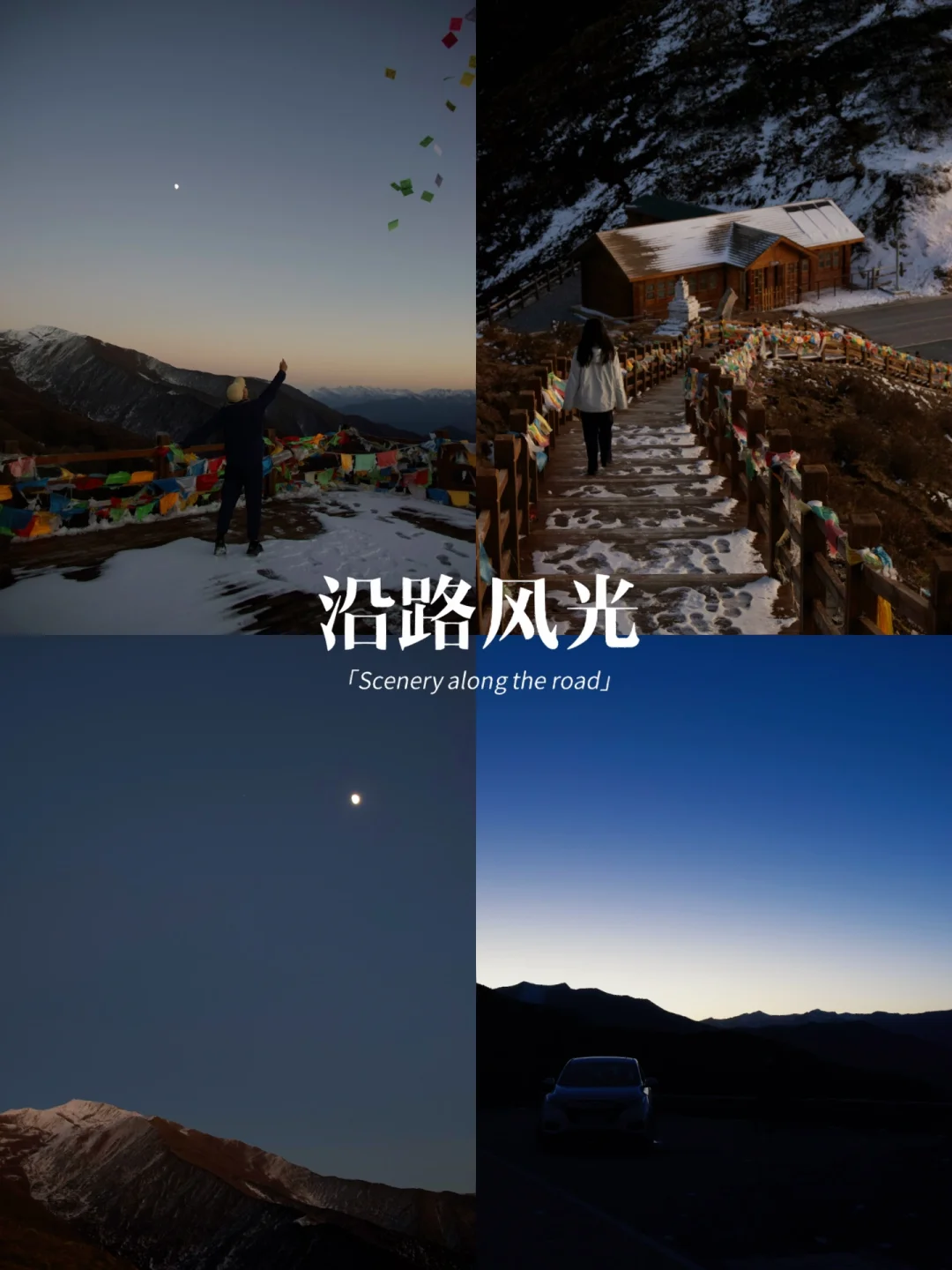 📍路上风景:去经过一个牧场和网红28道拐(图7,无人机拍很震撼,注意停车安全),不要错过山上垭口的观景台,我们这里拍到我们旅途最意外的美照(图8图9),当晚,🌙月色×🌄暮光×🗻雪山真的很美~
