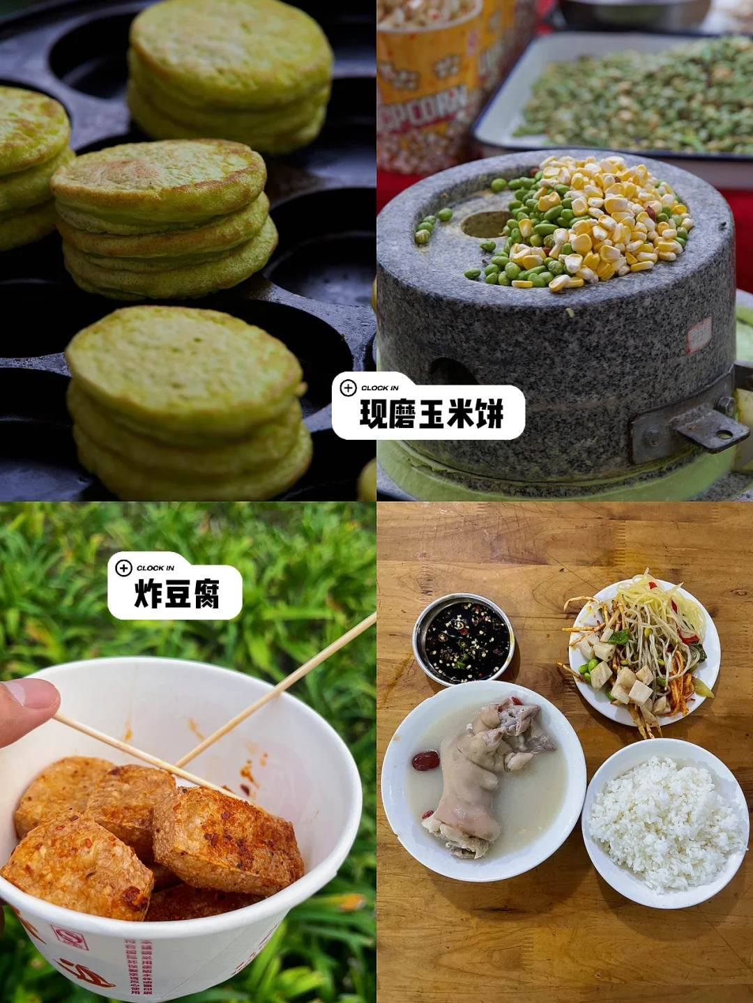6️⃣园区除了熊猫餐厅可以吃,也可以往下走到道明竹艺村(网红∞建筑那儿)路边的有很多小吃摊,一家🌽玉米饼(现磨青豆和玉米),一家炸豆腐很香脆。如果晚上路过崇州可以尝一尝“段蹄花”,他们家的蹄花🐖有当归之类的药膳,是崇州的老字号。