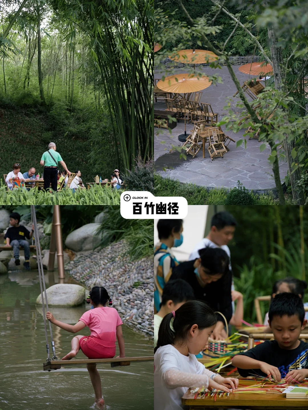 🍵百竹幽径:100多种竹子组成的幽径,这里可以喝茶,体验竹编,还有水上秋千。