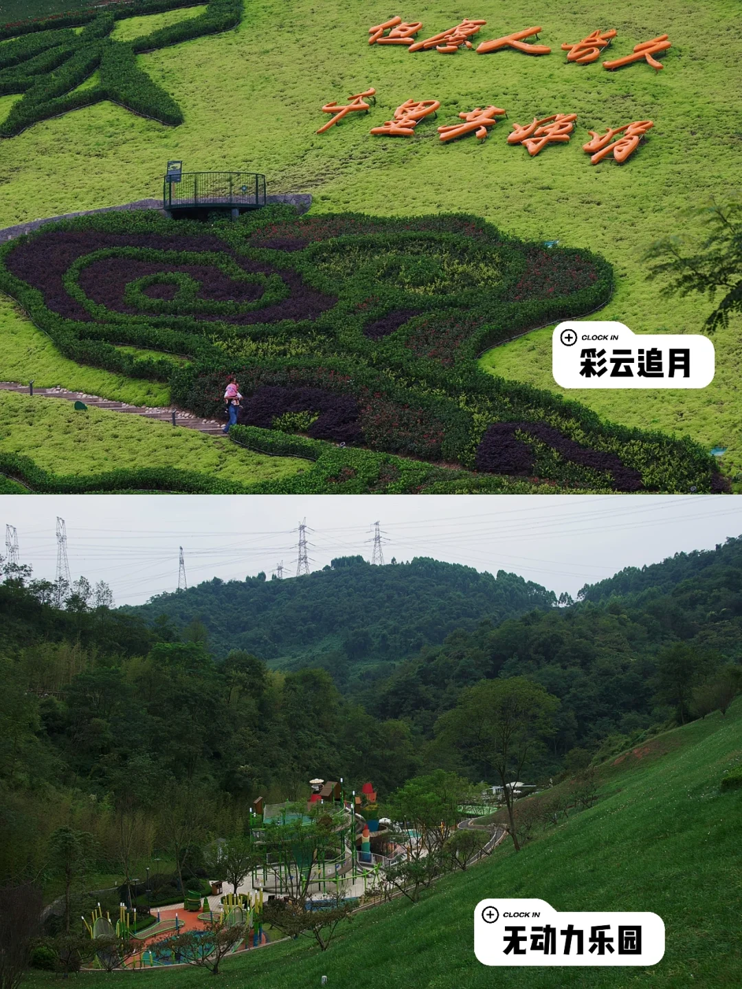 🌙彩云追月 、同心亭:出至陆游的诗词(他在崇州做过通判),为纪念陆游与友人当年的登高望月场景,用花草打造出的大地景观。