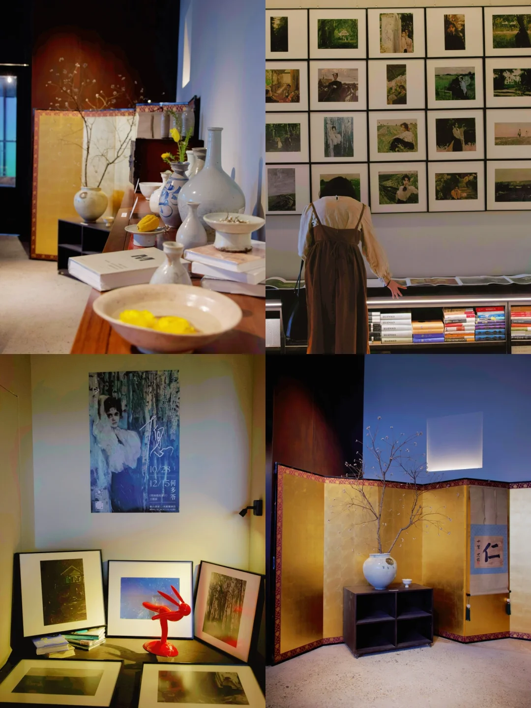 旁边有两处活动区,目前在做展览,一场是何多苓·《带阁楼上的房子》主题版画展🖼️以及李朝白瓷🍶系列展览,这是新山将人文和美学恰当融合的又一体现。