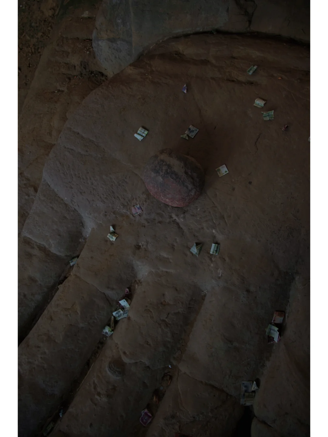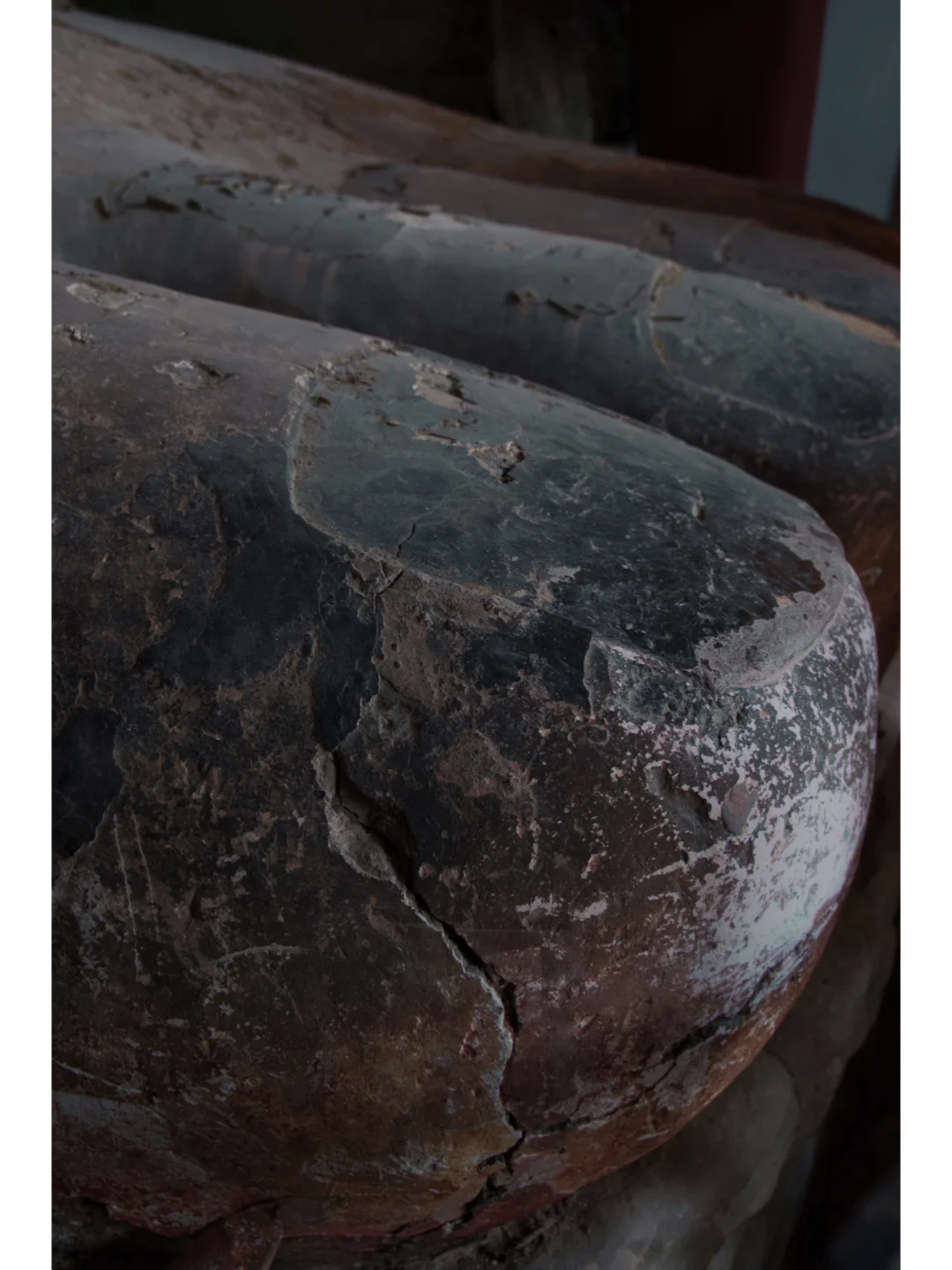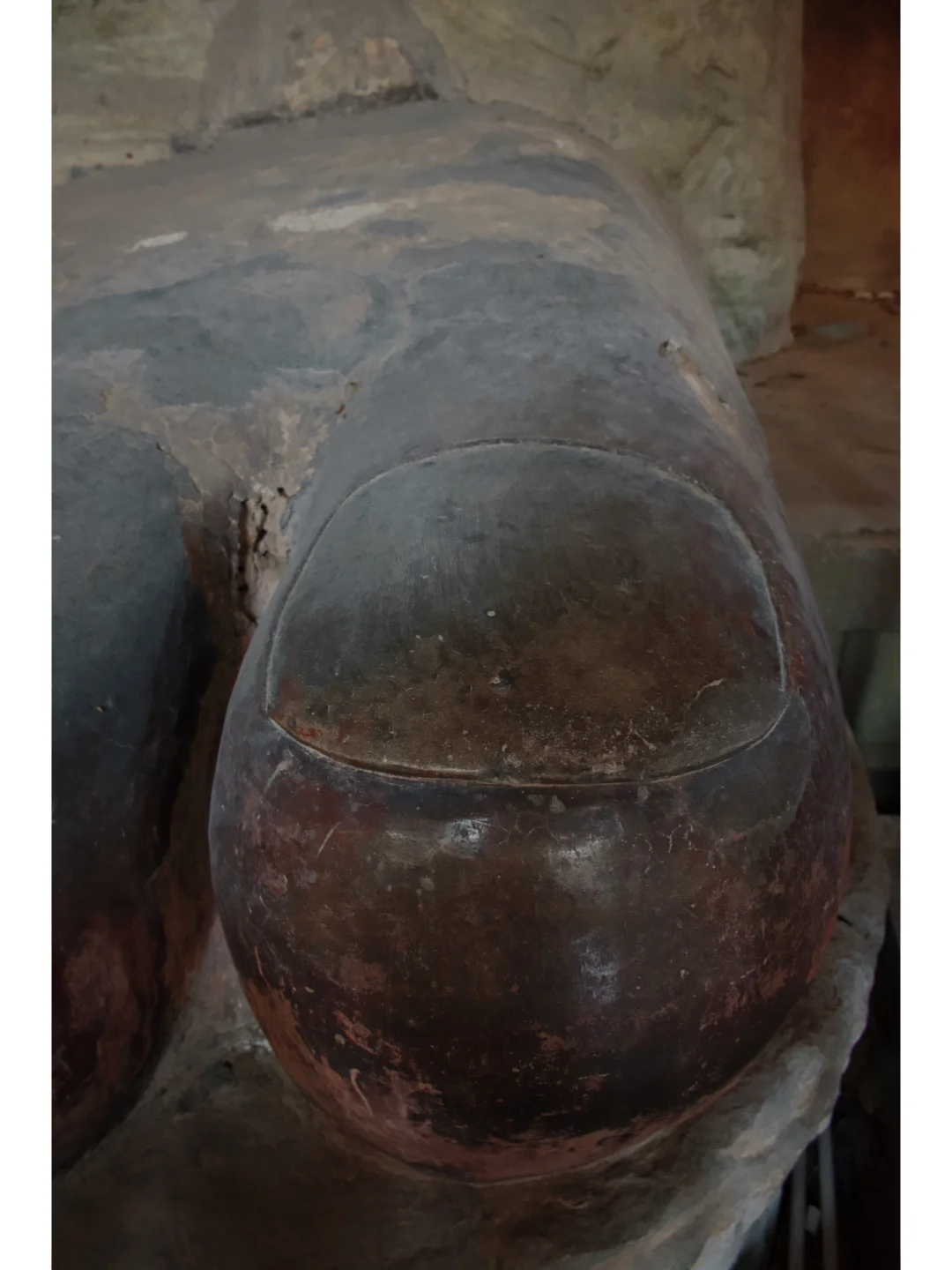 荣县有句俗话,“乐山大佛雄,荣县大佛美”。因为大佛曾经是有贴金的,一次是在北宋元丰元佑年间,一次是在清道光年间,大佛肉身处贴金、衣纹饰彩。可惜的是1943 年,当时的县长黄希濂看到大佛的金箔,打起了歪主意,以修缮大佛为由,刮下金箔,然后用不值钱的金粉粉饰,以假乱真不长久,昔日金光闪闪的大佛,从此斑驳陆离。😔