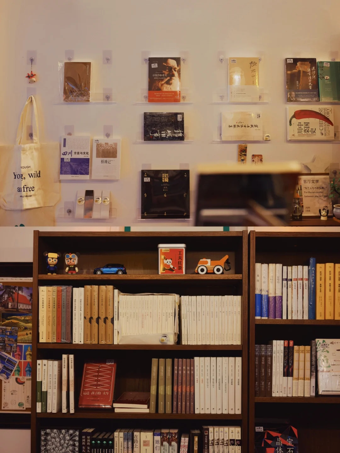 其中客厅文学有个重要的组成部门就是巴蜀文化,因为路遥和其先生都很喜欢巴蜀文化,袁庭栋、李劼人、王以培等等老师的书都有,其中还有一套“小一点”的镇店之宝半“李劼人”精装全集。路遥在做书店之前,她做了12年的涉外✈️旅游,所以她特别喜欢外国的的视角来看中国一些书籍,比如何伟的三部曲。