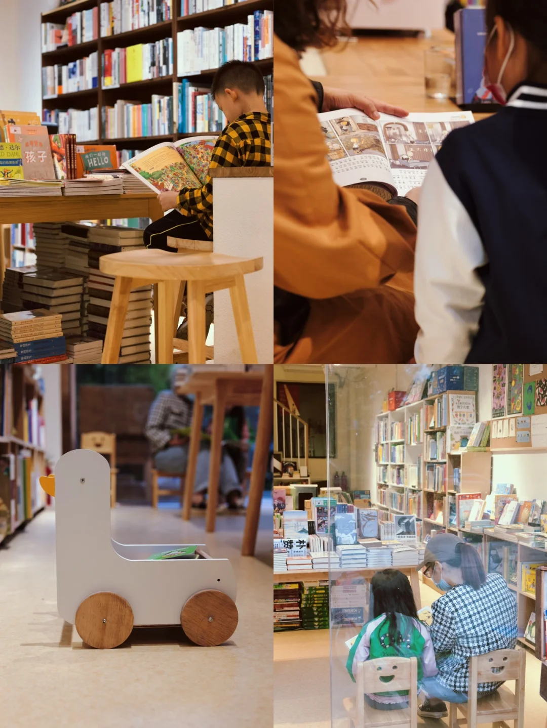 1、👧童书:这家书店区别于其他成都独立书店,童书是书店的一大特色,整个童书区域位于1楼,晚上或是周末,有不少家长带着小孩来书店看书。