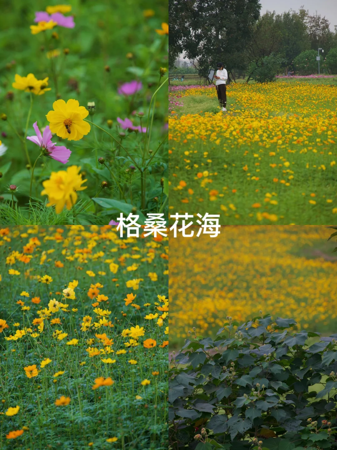 目前芙蓉花还有40000㎡格桑花海💐(图8)正在盛开,可以一并打卡,另外芙蓉旁边有一处较大的银杏林🍂,预计中旬将迎来最佳观赏期(图9),芙蓉园旁边,也是属于锦城绿道🚴的一部分,导航“”武侯绿博经济园”即可。